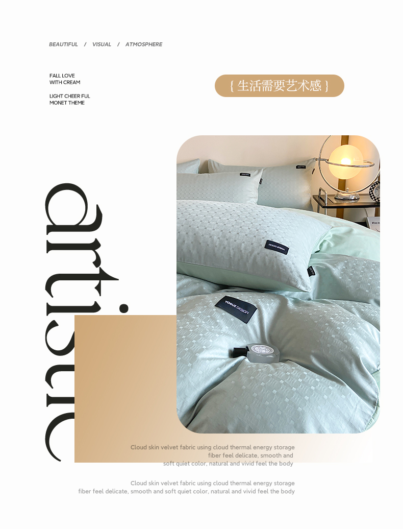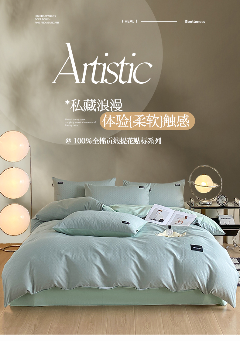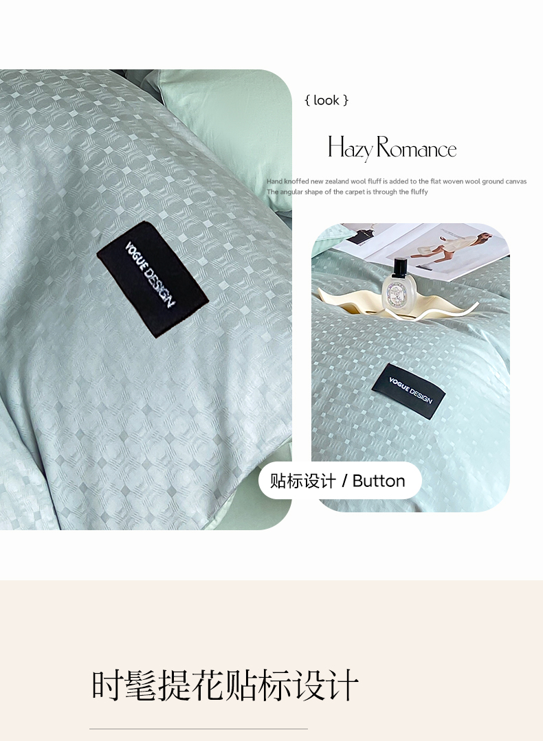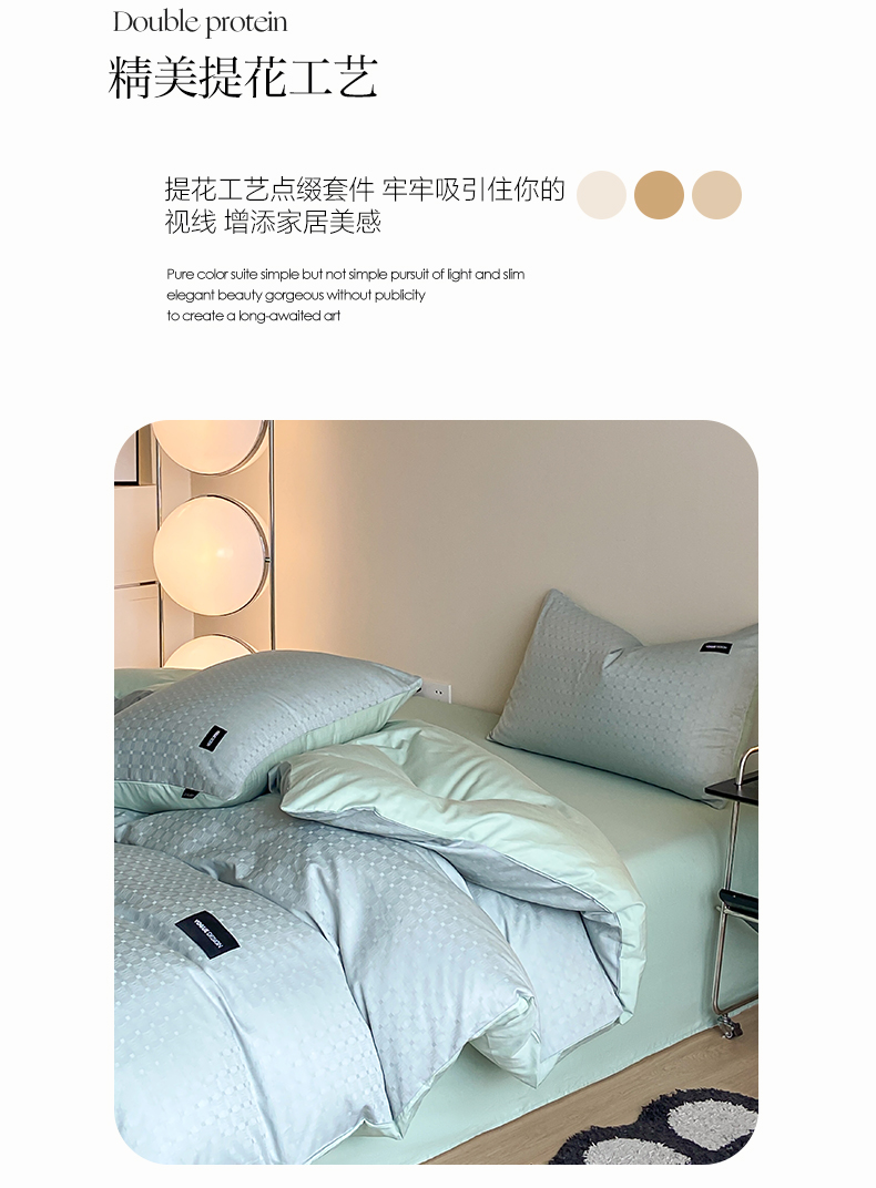 当前位置: 91家纺网 > 商品网购 > 床品套件 > 四件套 > 全棉普通四件套 > 莱登卡奴 2024新款全棉原棉贡缎提花贴标款系列四件套 曲线格浅绿