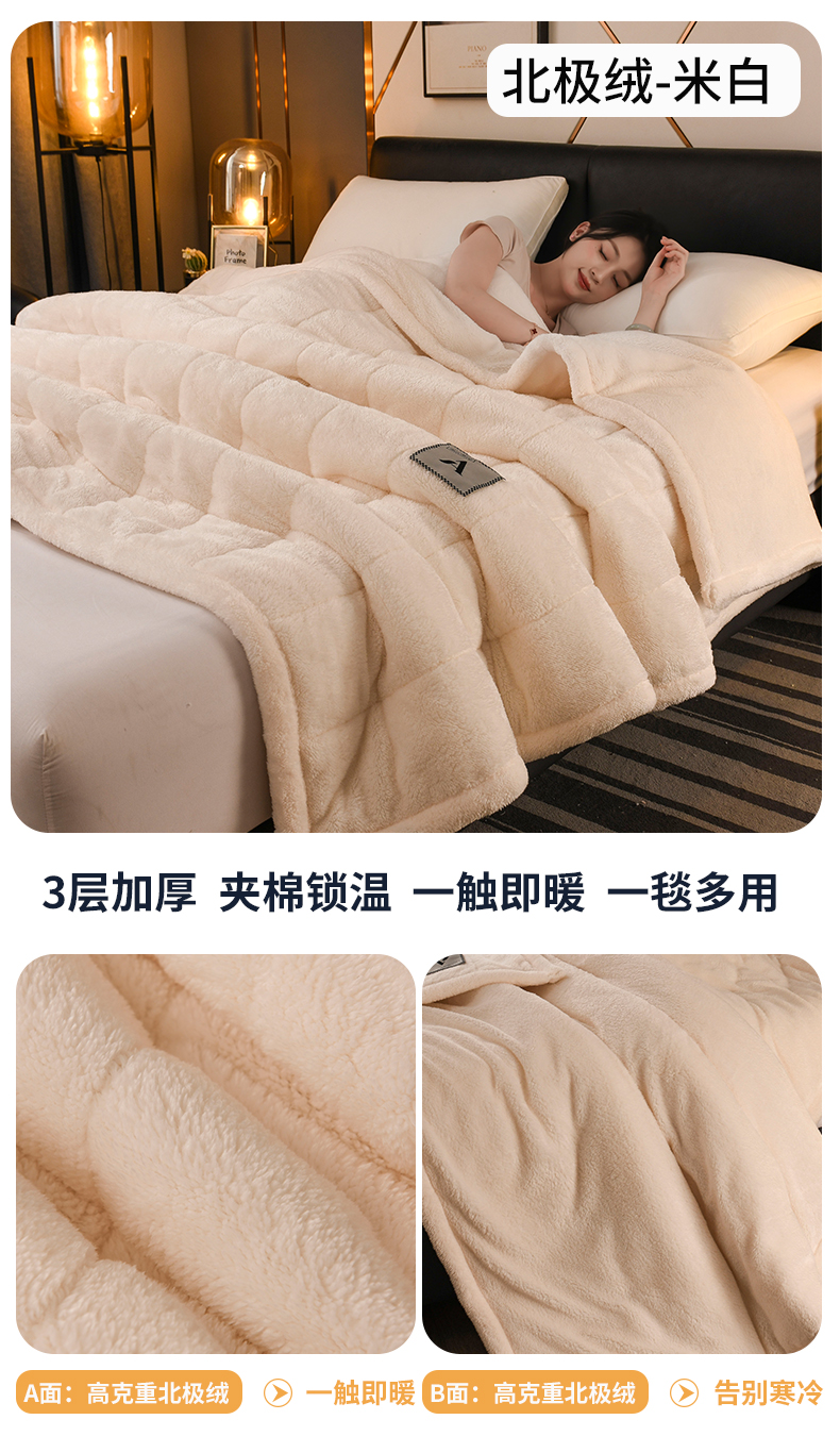 商品名称:恋绒家纺 2025新款加厚三层毛毯被牛奶绒复合毯子夹棉盖毯午睡毯子法莱绒毛毯 (亲肤绒-)-米白