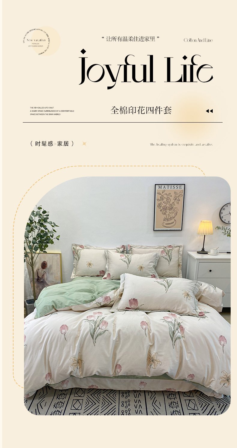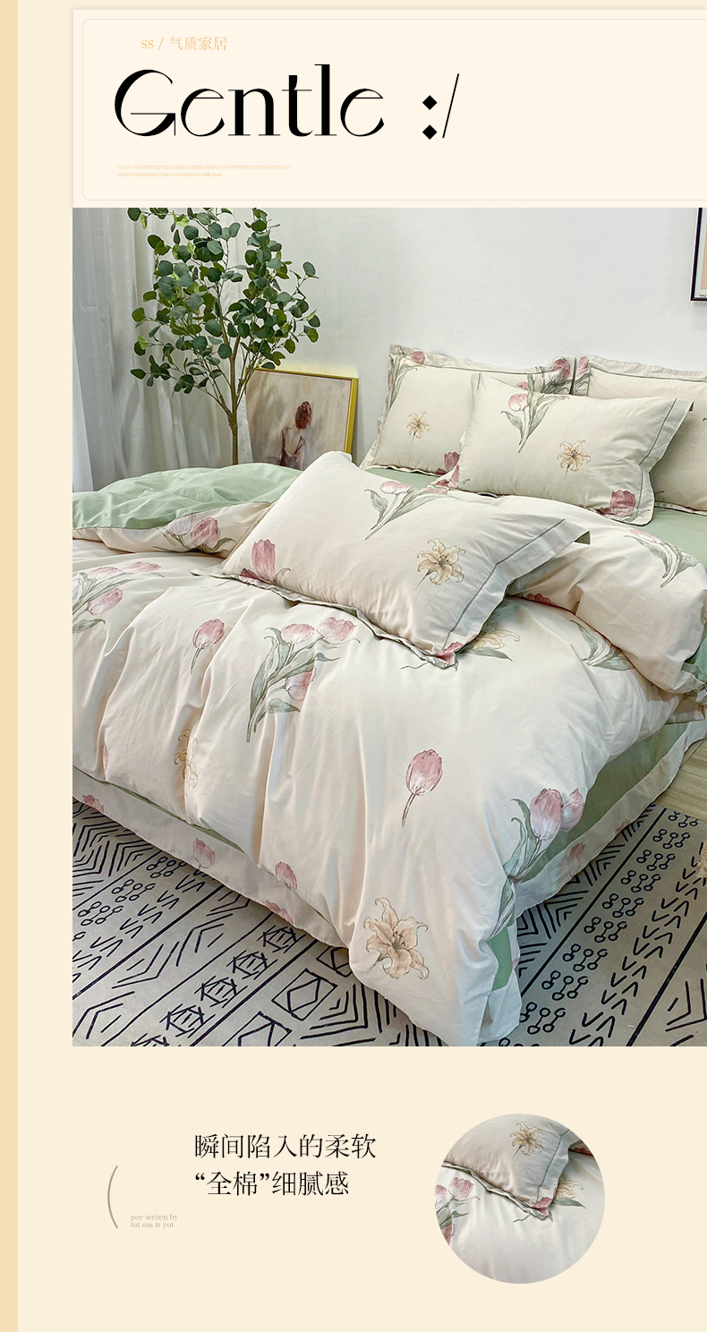 商品名称:橙艺家居 2024新款铂金柔棉全棉印花四件套 花茶仙