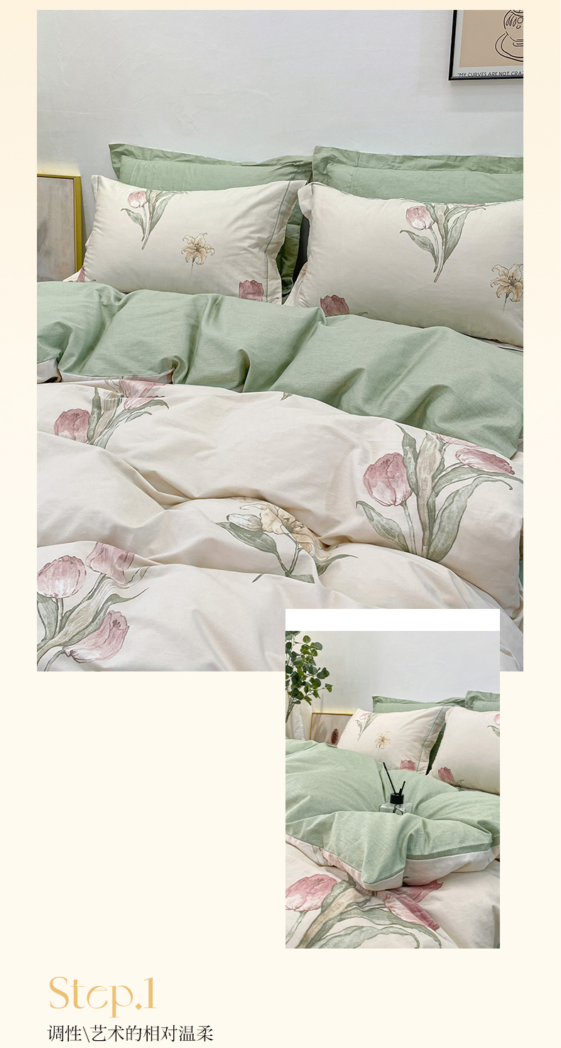 (总)橙艺家居 2024新款全棉臻品柔棉立体小宽边四件套,云苓-绿,白芷-米,采薇-粉,澄意-绿,罗曼史-绿,奈雪-绿,芊语-紫,圆妙-桔,栀柔-粉