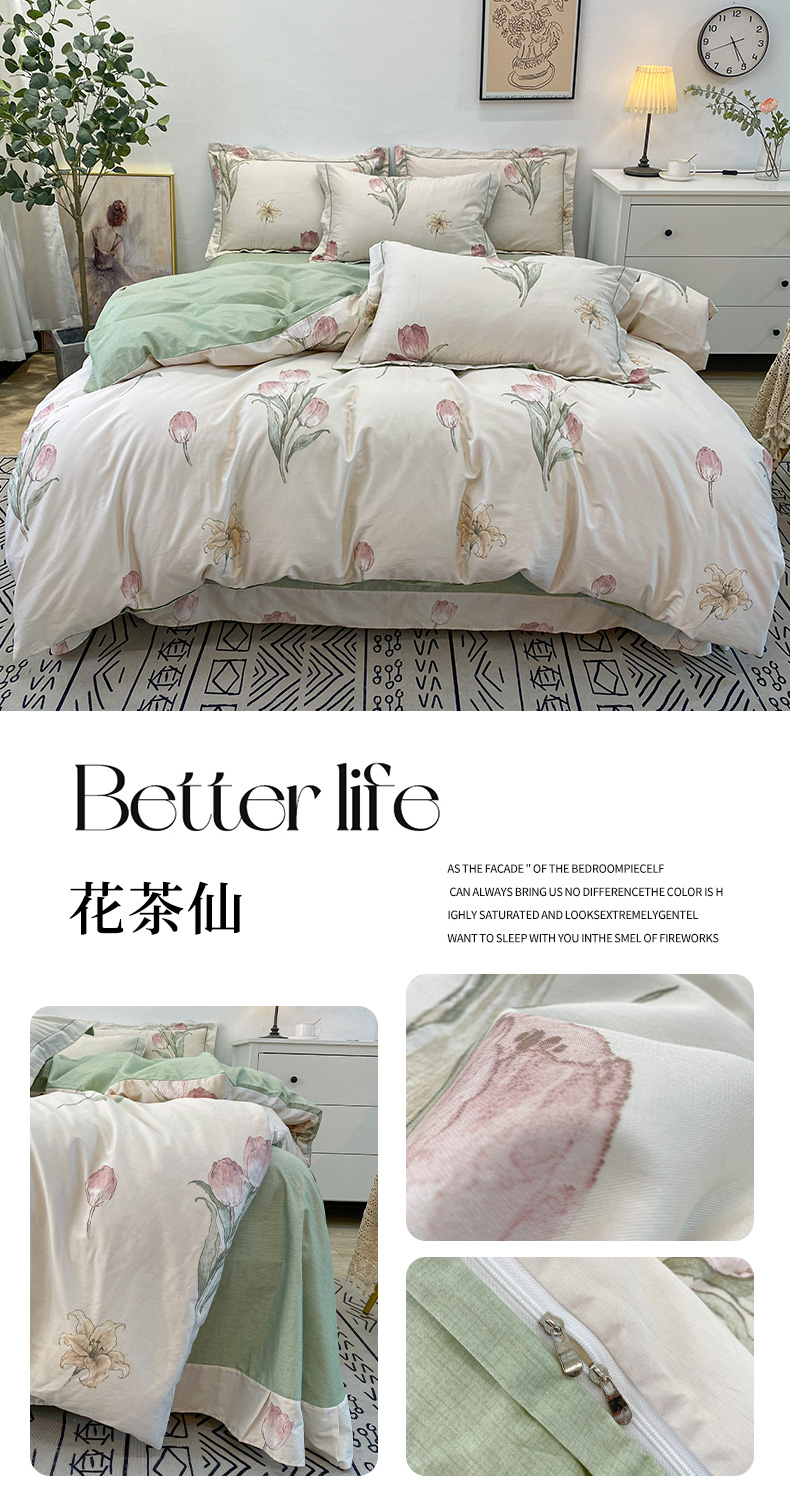 橙艺家居 2024新款铂金柔棉全棉印花四件套 花茶仙