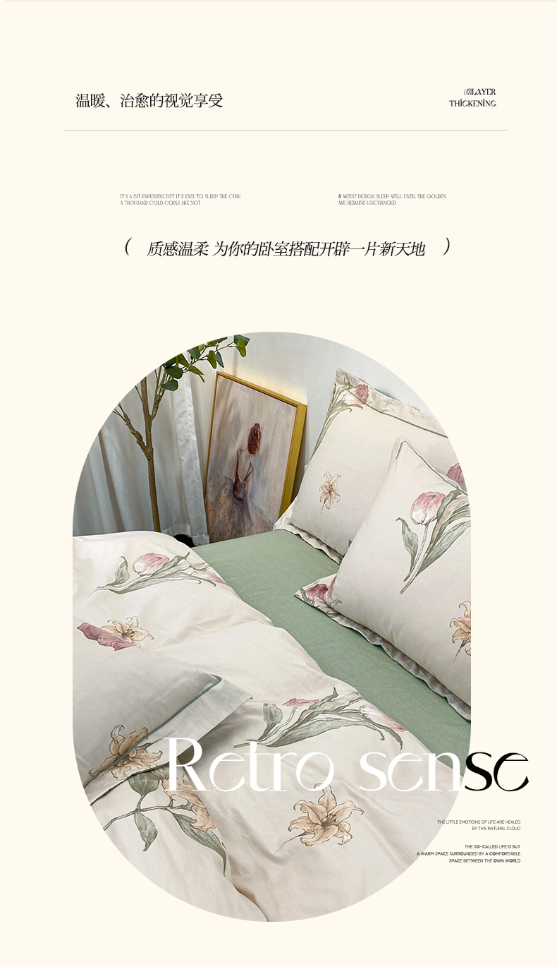 (总)橙艺家居 2026新款丝光铂金云棉印花四件套 本店线上严格控价,券后、活动后标准不得低于218元,以此类推。请各位老爷严格遵守,以免低价后再调整价格,影响链接权重,花朝拾露-紫,花田诗梦-粉,花颜外-粉,蔓月-紫,梦叶集-粉,慕枝下-绿,千叶密语-粉,闻栖-绿,雅莹-绿,叶间绒雪-兰,叶木槿-米,予她-粉,自然低语-绿,芙晚,奈亚,婉情-灰