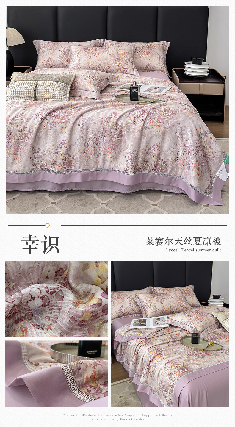 商品名称:娇逸家居 2025新款50支印花莱赛尔天丝夏被镂空款花边夏凉被 幸识
