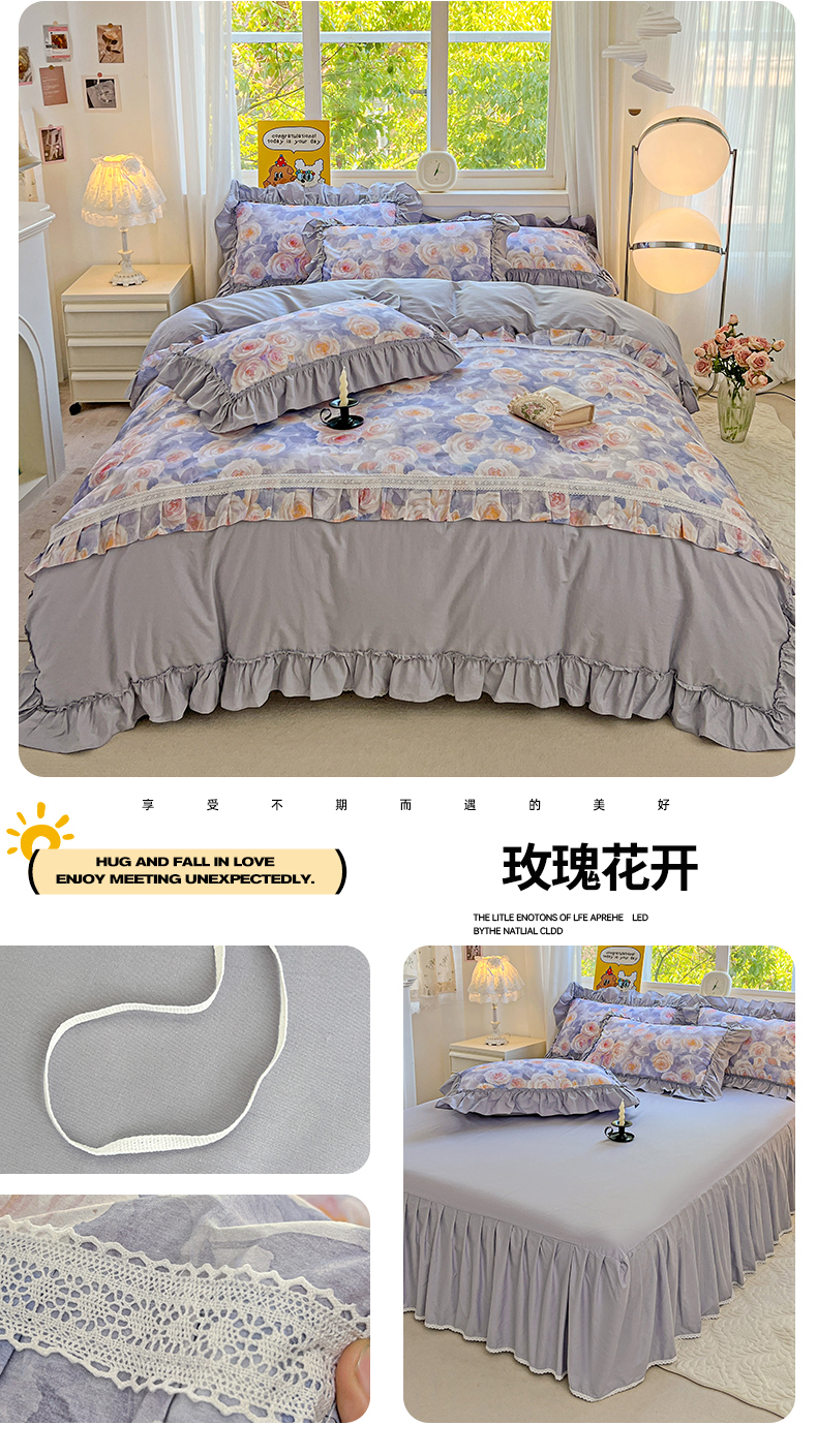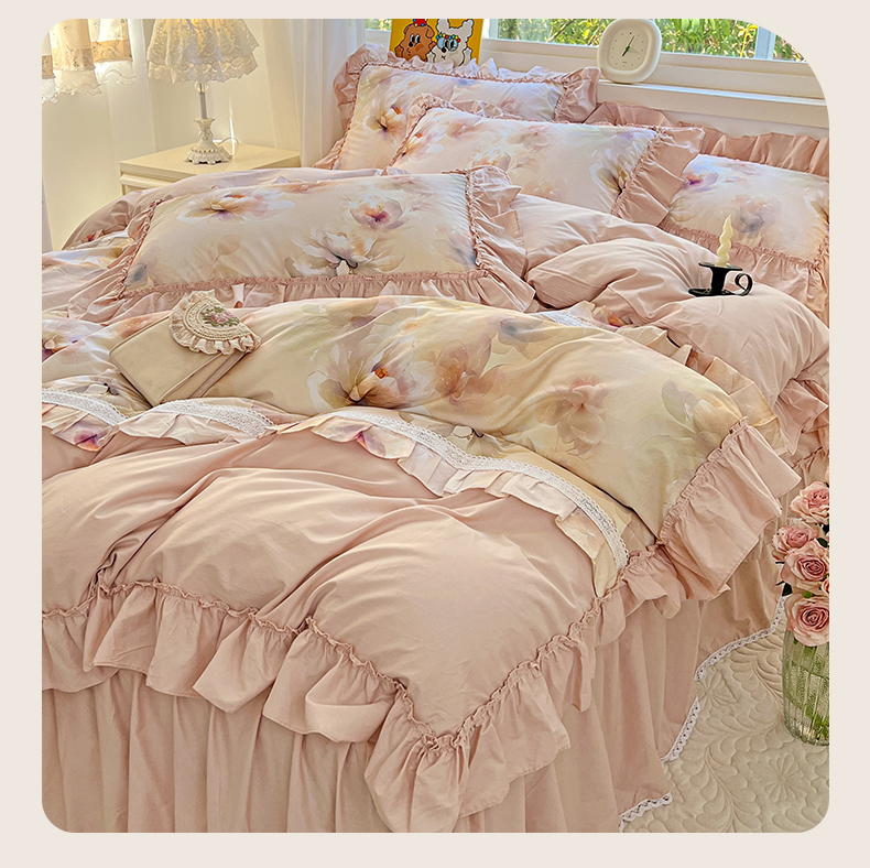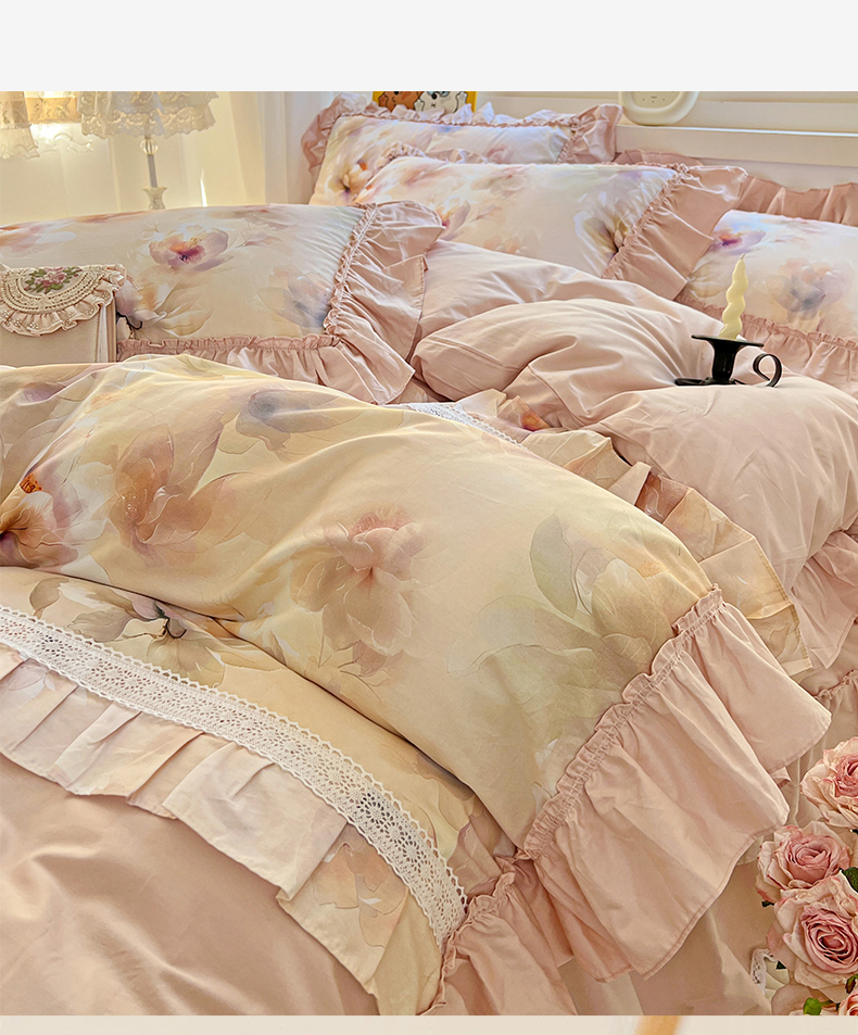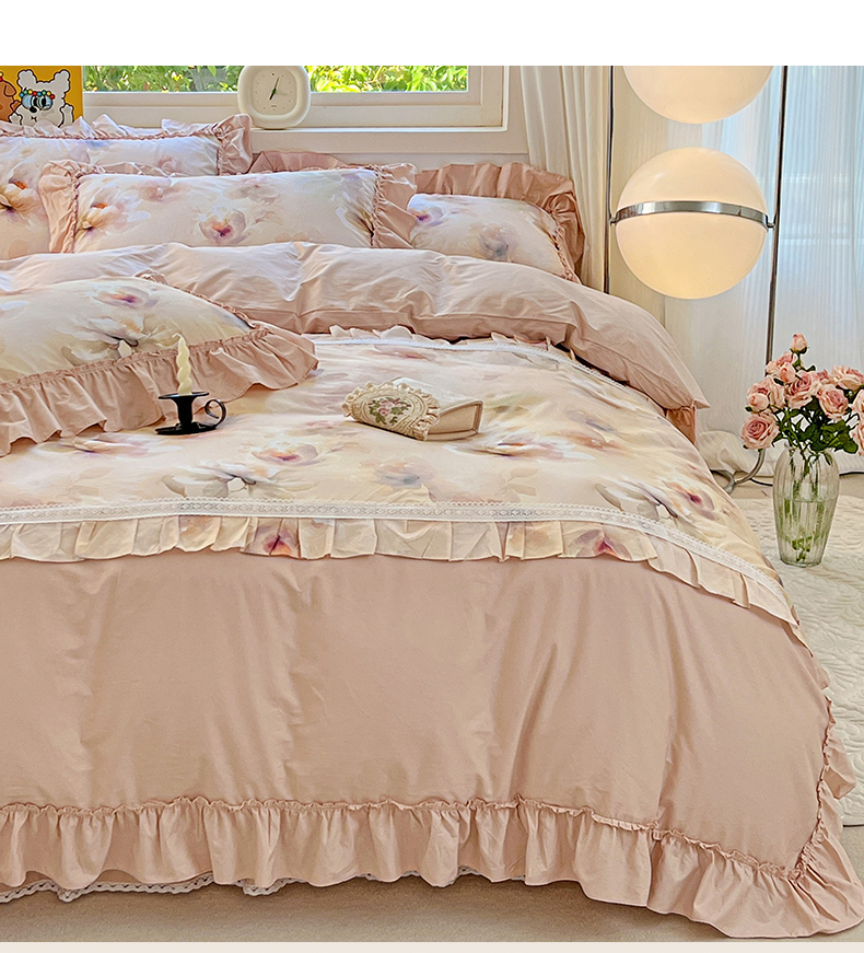 (总)迪欧芙2025新款全棉法式数码印花床裙四件套