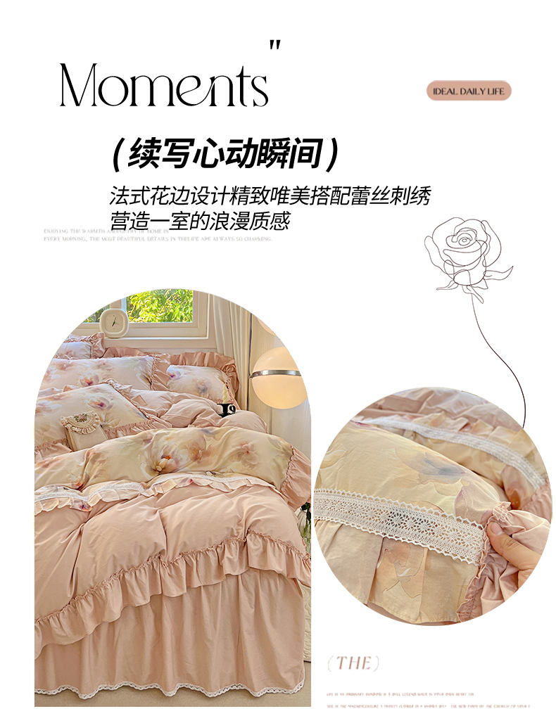 商品名称:(总)迪欧芙2025新款全棉法式数码印花床裙四件套