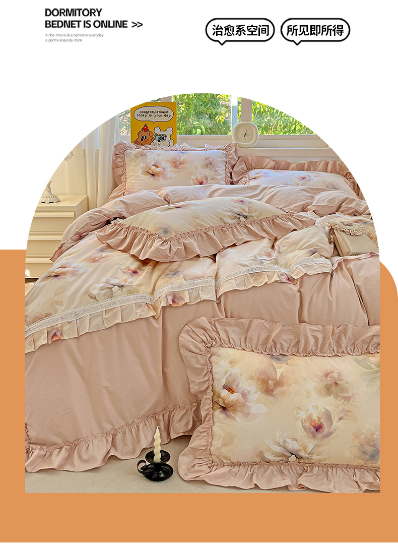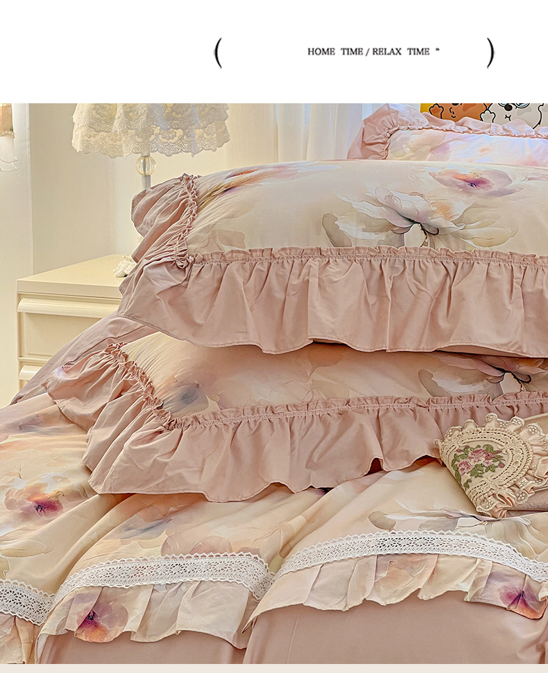 迪欧芙 2024春季纯棉13372公主风四件套爱的结语系列 爱的结语-粉,爱的结语-粉