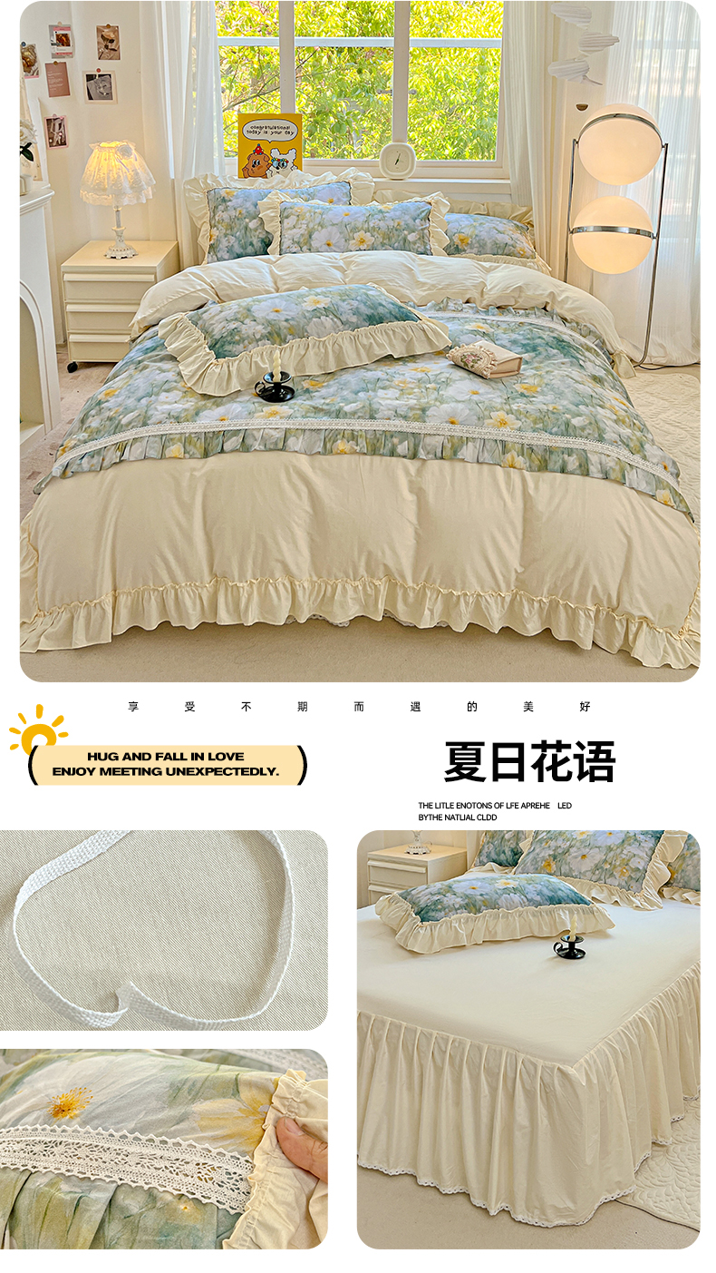 (总)迪欧芙 2023新款全棉喷气133*72公主风荷叶边四件套,乔安娜白,乔安娜粉,乔安娜黄