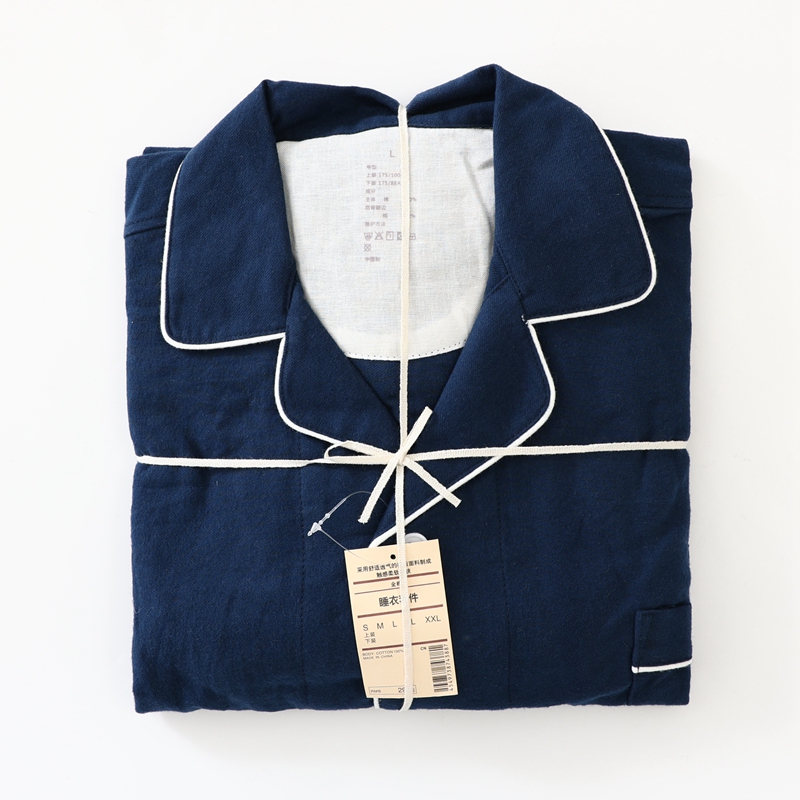 商品名称:伊嫚家居 2025新款无印日式双股全棉法兰绒家居服良品睡衣女纯棉直播秋冬款情侣睡衣 纯藏青色男