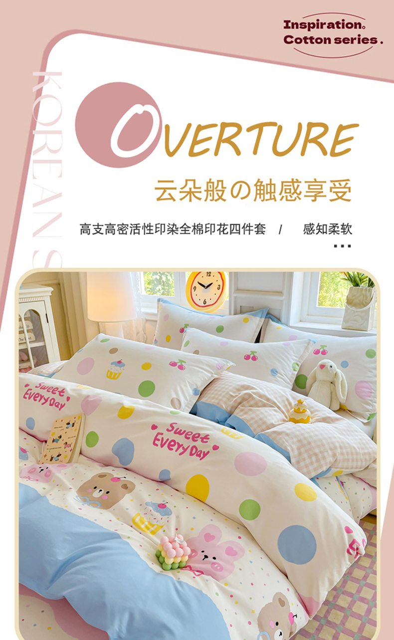 禧安居 2025新款高支高密活性印染全棉印花四件套全棉四件套三件套被套(支持定制尺寸)温馨甜宠,温馨甜宠