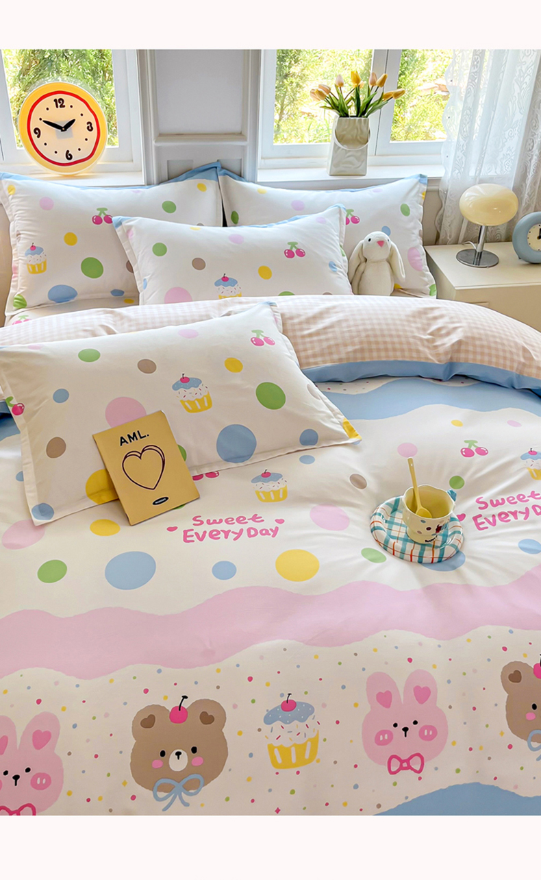 禧安居 2025新款高支高密活性印染全棉印花四件套全棉四件套三件套被套(支持定制尺寸)原宿女孩,原宿女孩
