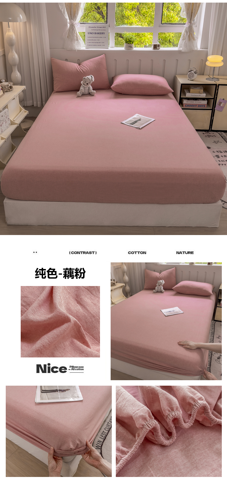 • 91家纺网 家纺一手货源 找家纺 晚依家纺 2025新款A类色织全棉纯棉水洗棉床笠单件纯棉格子纯色学生宿舍定制定做 纯色-藕粉
