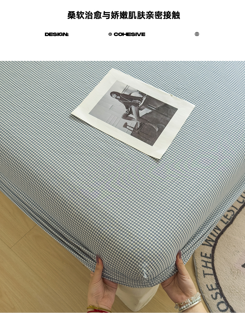 • 91家纺网 家纺一手货源 找家纺 晚依家纺 2025新款A类色织全棉纯棉水洗棉床笠单件纯棉格子纯色学生宿舍定制定做 密格-浅蓝