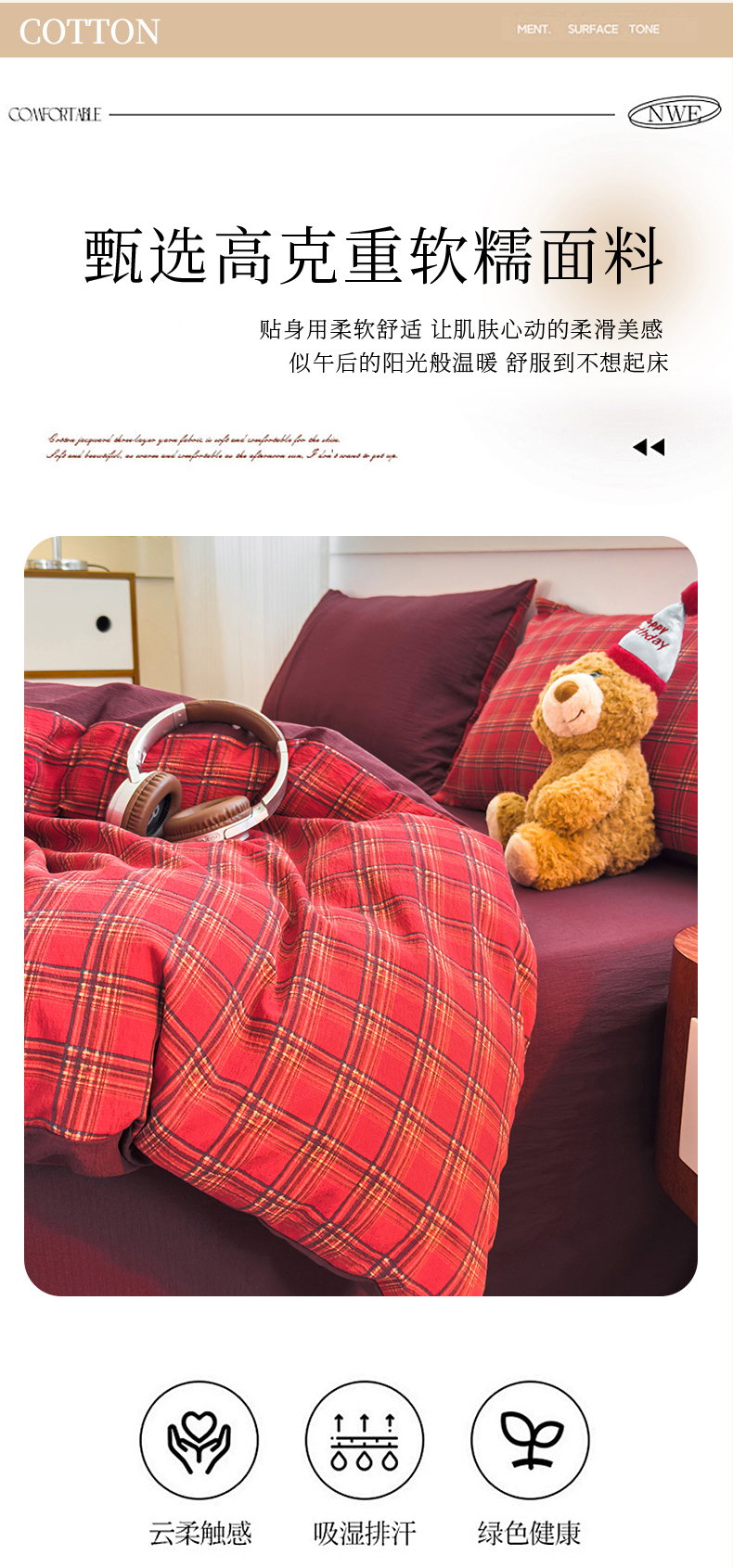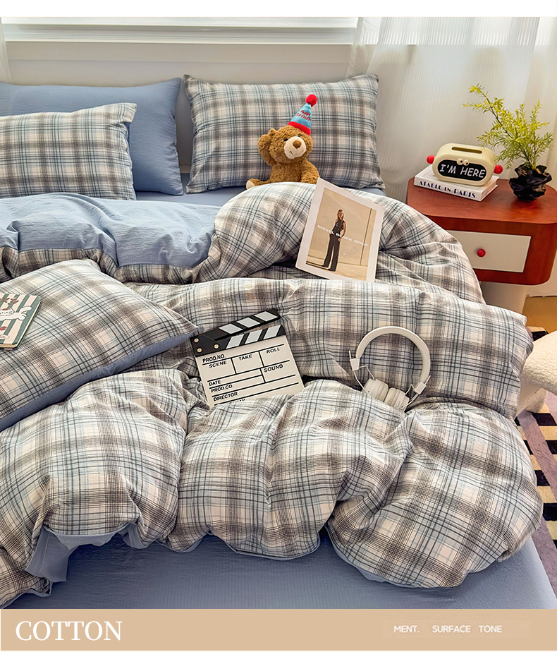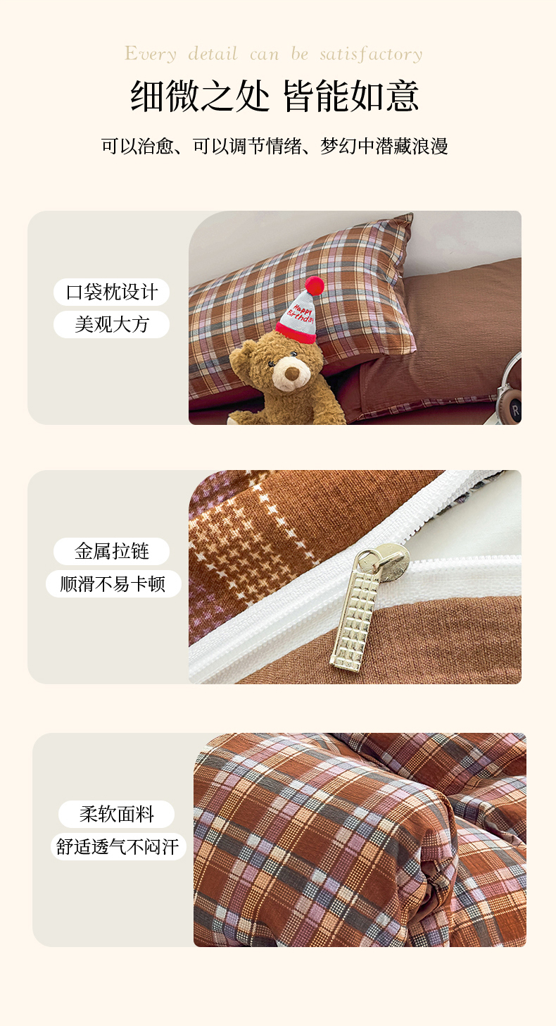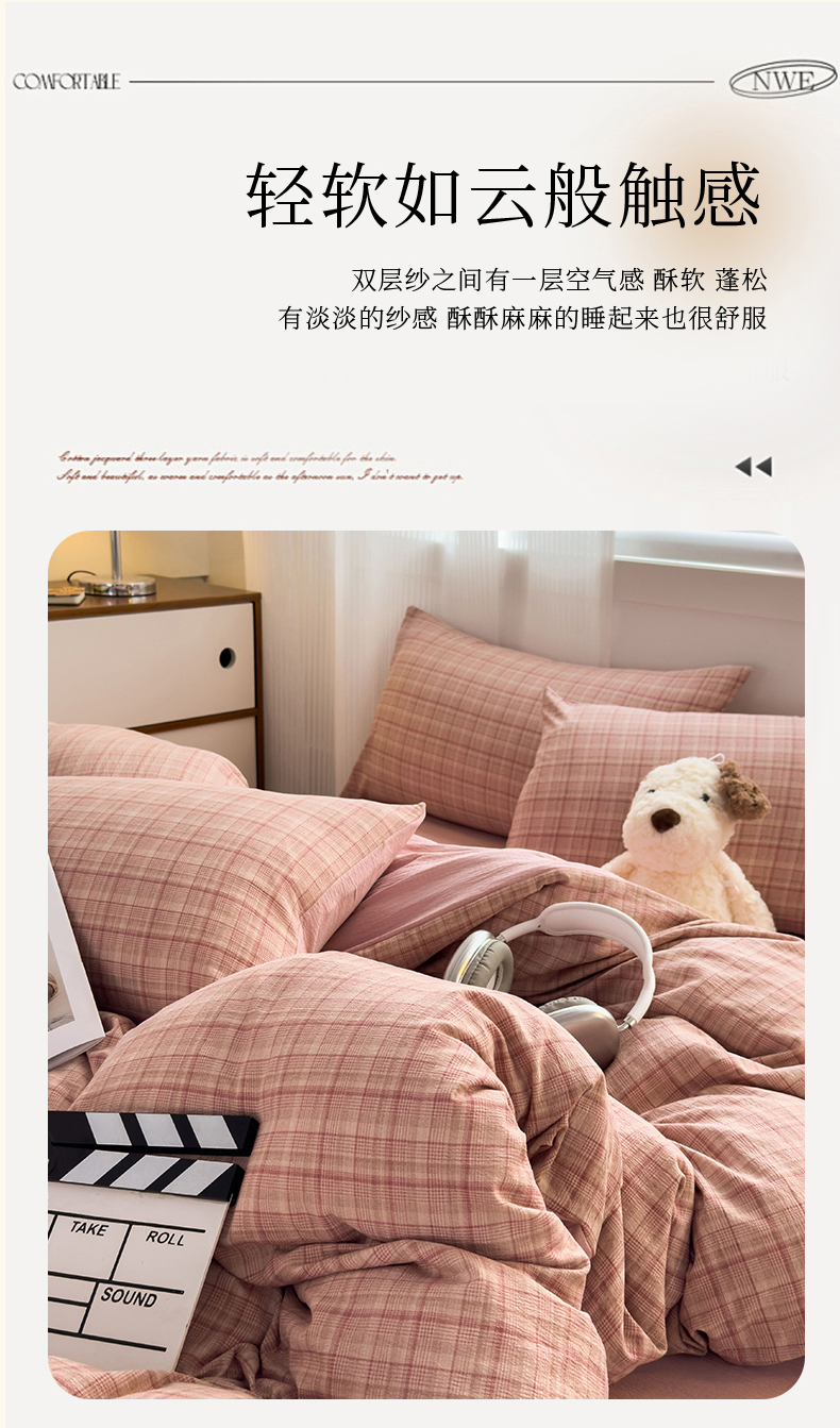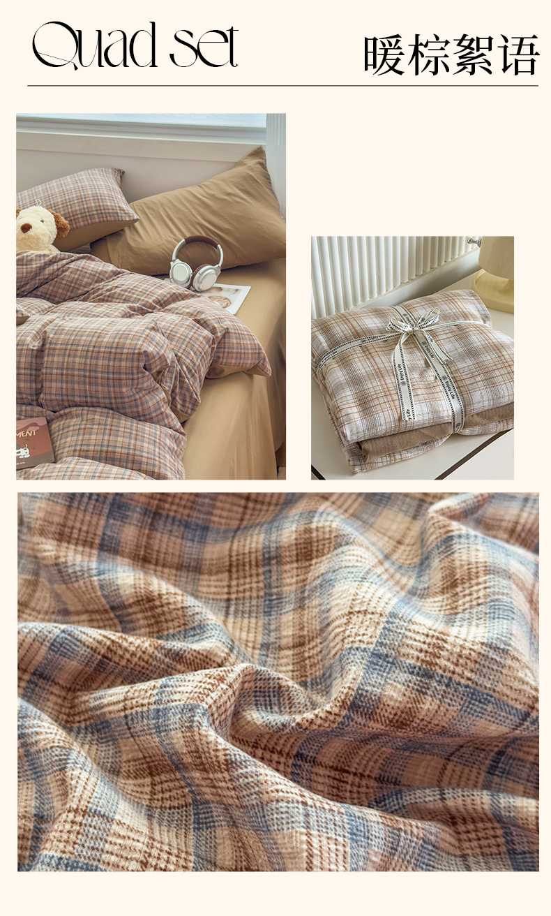 当前位置: 91家纺网 > 商品网购 > 床品套件 > 四件套 > 双层纱四件套 > 亨通家纺 2025新款复古原麻双层纱格子系列四件套 格韵暖眠