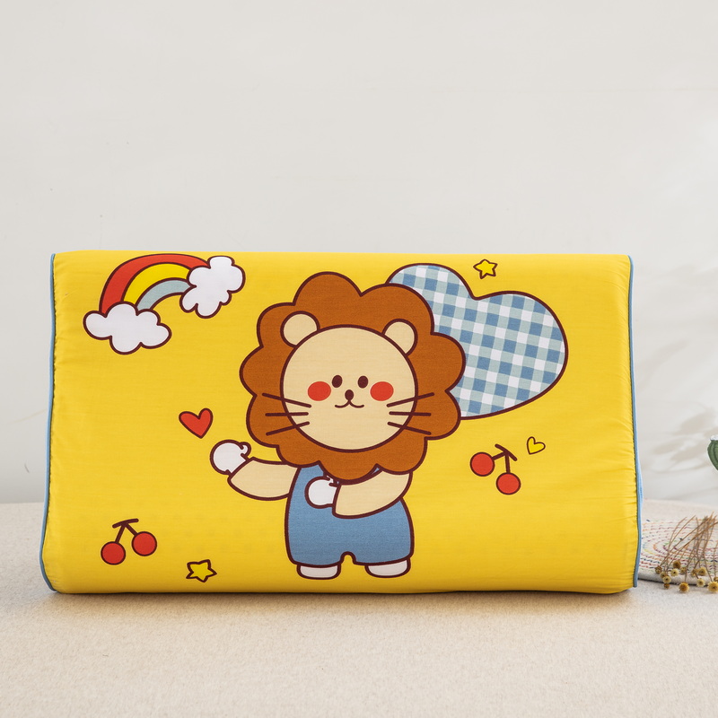 商品名称:大黄蜂家居家纺 2025新款全棉13372棉儿童卡通乳胶枕套 彩虹狮子
