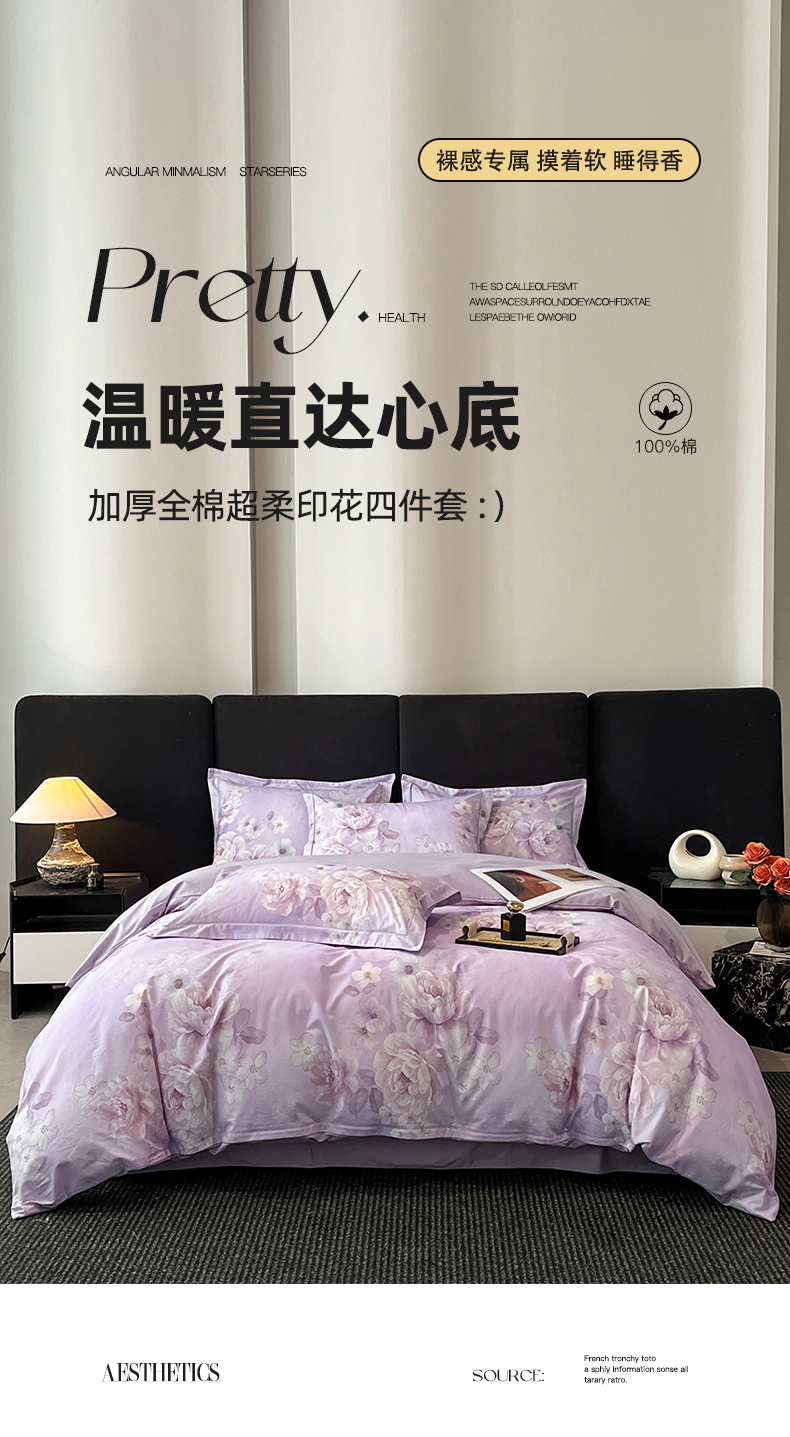 当前位置: 91家纺网 > 商品网购 > 床品套件 > 四件套 > 全棉普通四件套 > 格里芬 2025全棉加厚磨毛纯棉生态磨毛印花四件套 丽芙-紫