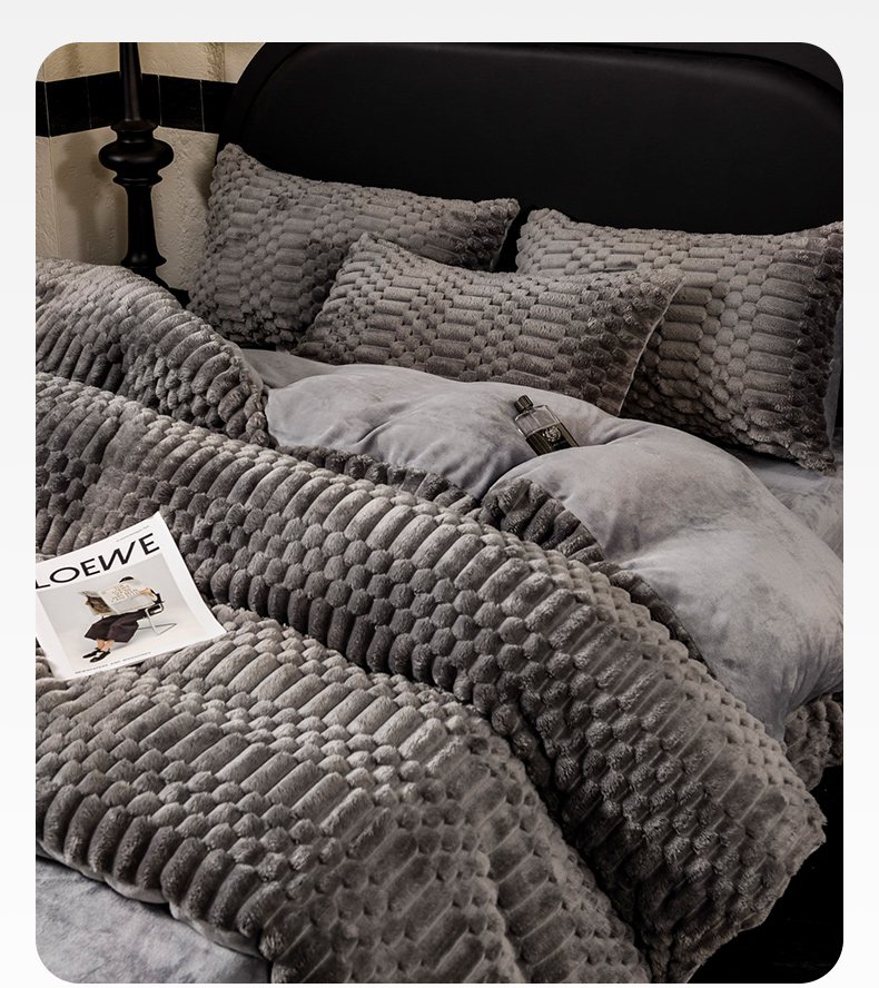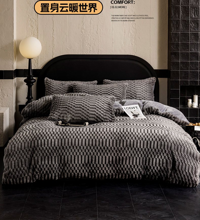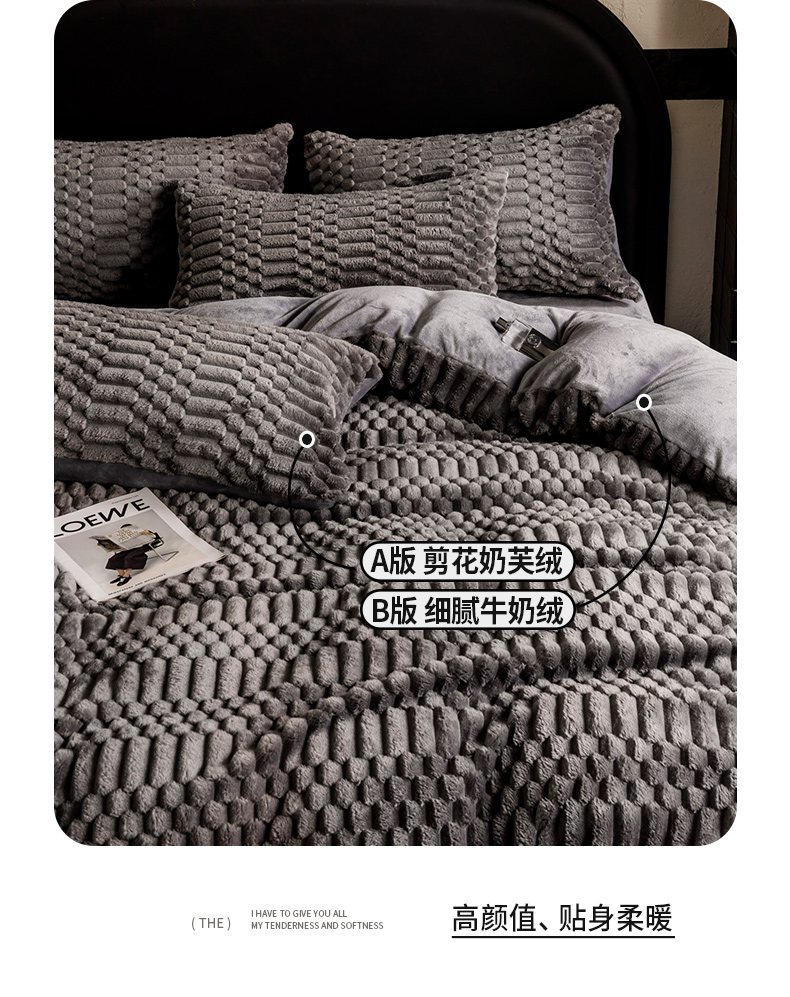 当前位置: 91家纺网 > 商品网购 > 床品套件 > 四件套 > 牛奶绒四件套 > 潮邦创意家居 2025新款冬季提花奶芙绒牛奶绒四件套-暖绒奶芙系列 暖绒奶芙-绅灰