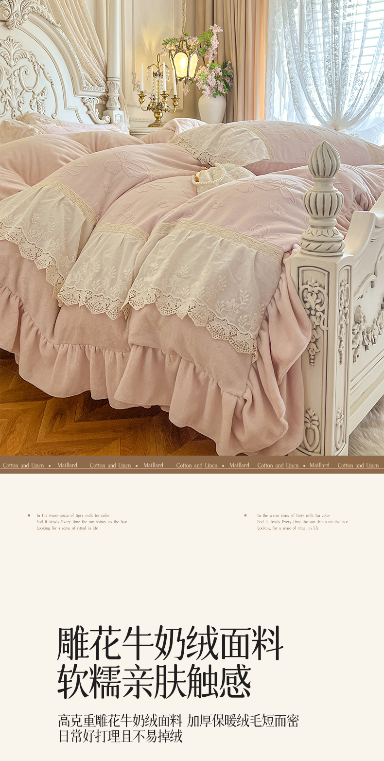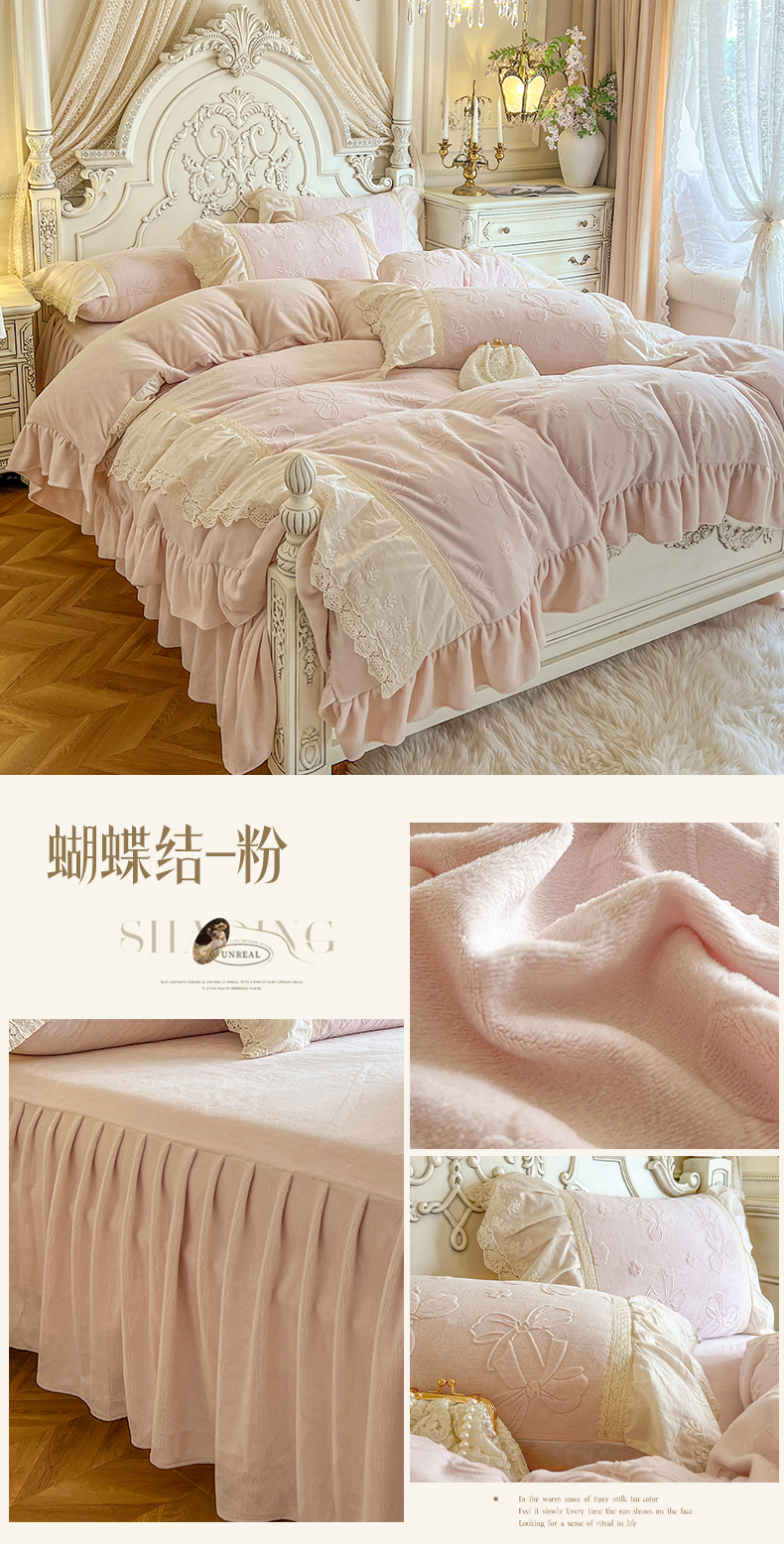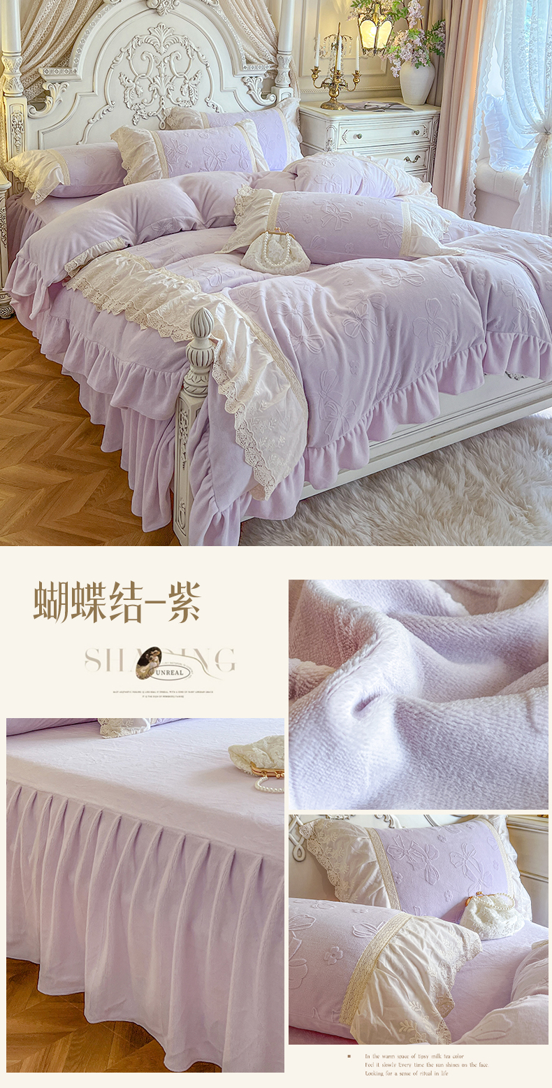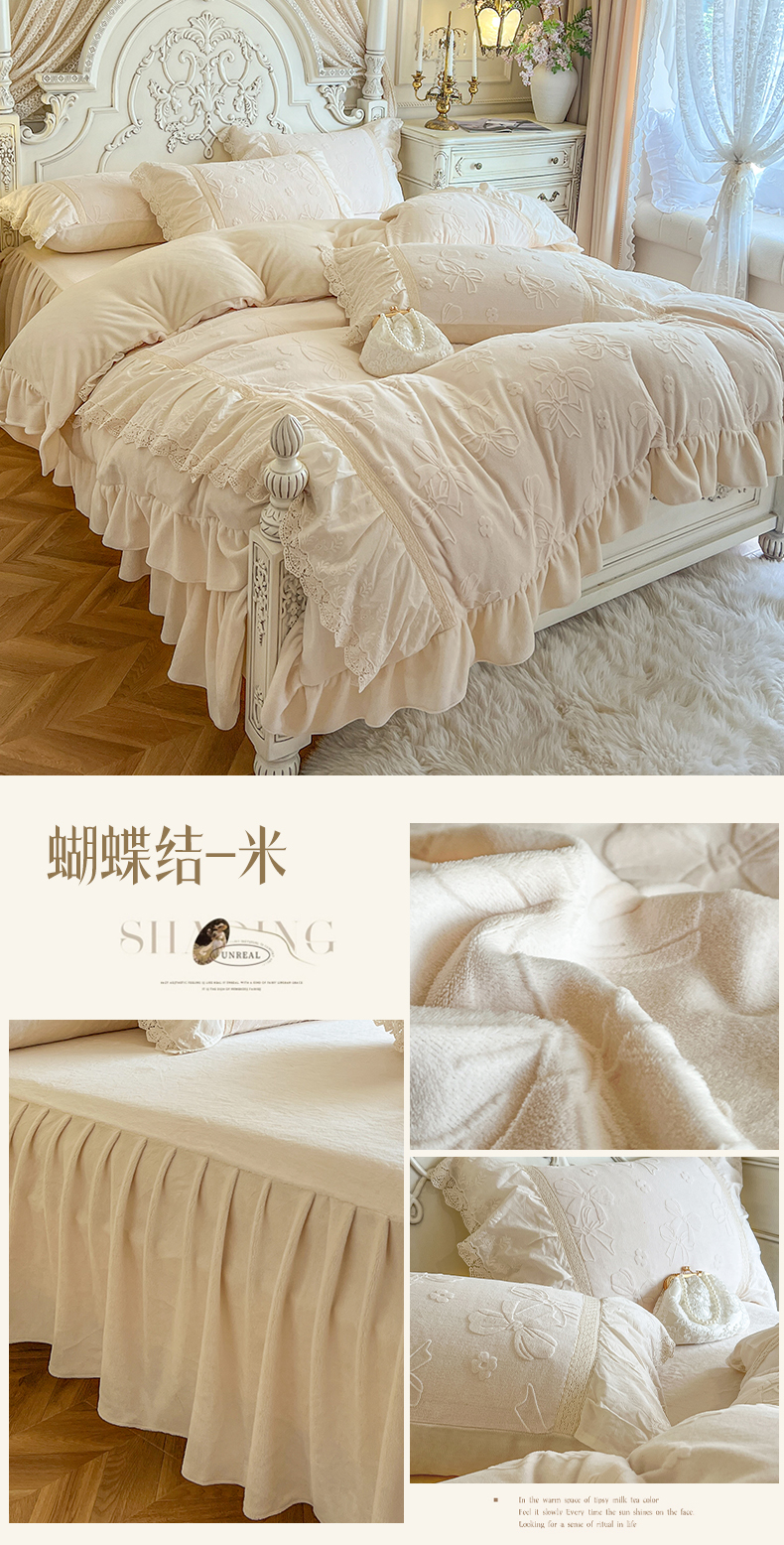 当前位置: 91家纺网 > 商品网购 > 床品套件 > 四件套 > 牛奶绒四件套 > (总)好儿喜家纺 2025新款法式雕花牛奶绒四件套床裙款-蝴蝶结系列