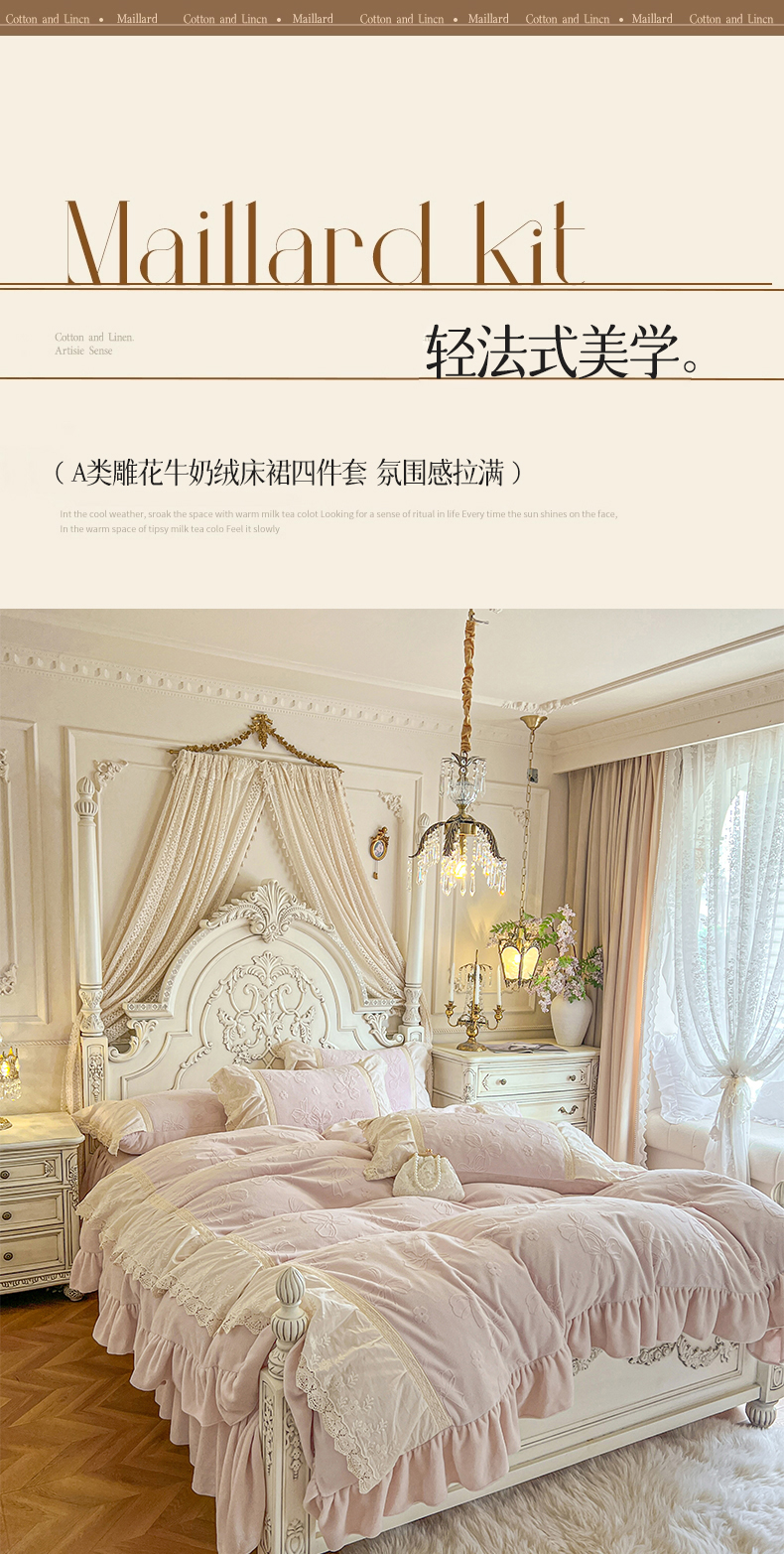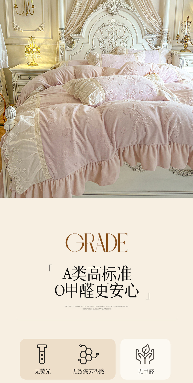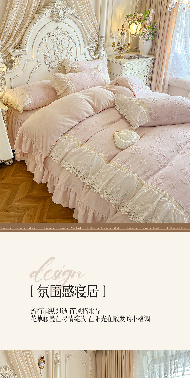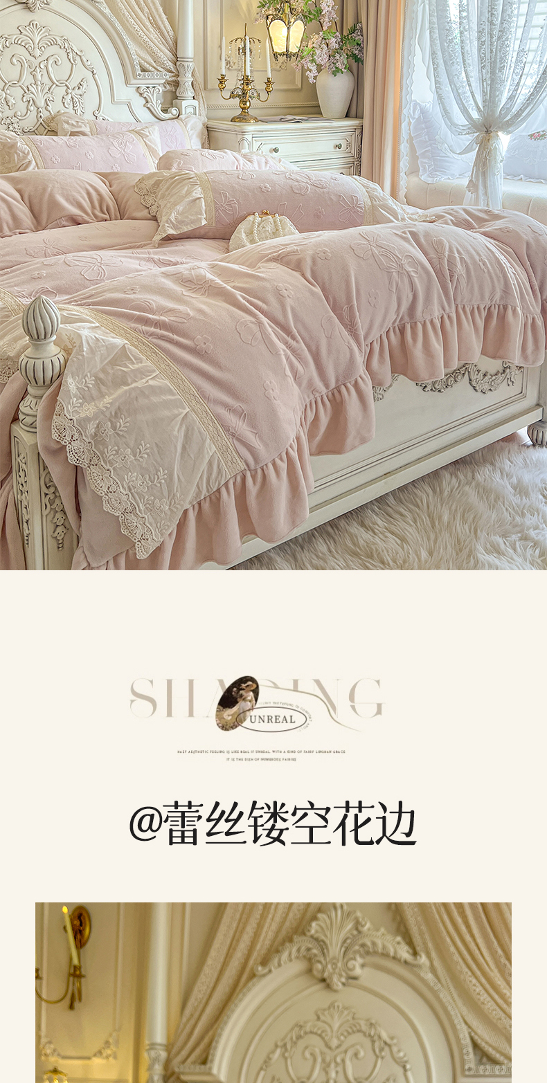 当前位置: 91家纺网 > 商品网购 > 床品套件 > 四件套 > 牛奶绒四件套 > (总)好儿喜家纺 2025新款法式雕花牛奶绒四件套床裙款-蝴蝶结系列