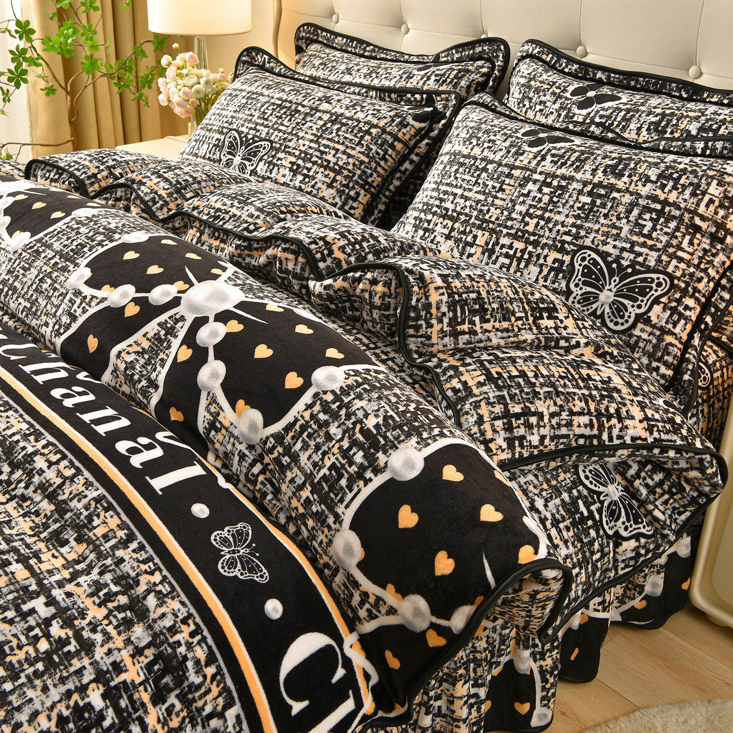 赛丽雅 2025新款牛奶绒床裙四件套8-9斤法莱绒直播爆款日产2万套 小香