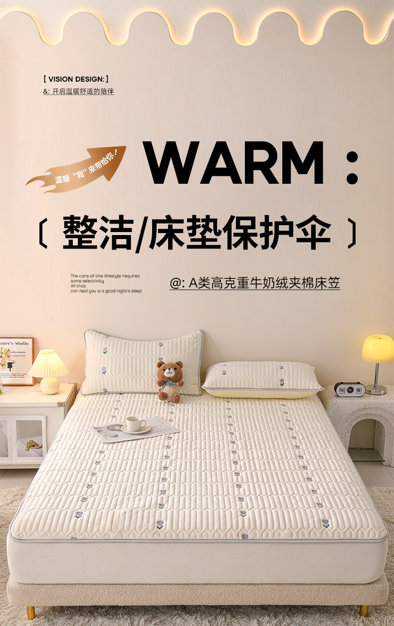 • 91家纺网 家纺一手货源 找家纺 (总)推推家纺 2025新款刺绣夹棉宝宝绒床笠牛奶绒床垫保护套,三色熊-蓝色,郁金香-米白,郁金香-酒红,郁金香-蓝色,郁金香-深灰,三色熊-酒红,三色熊-米白,三色熊-深灰
