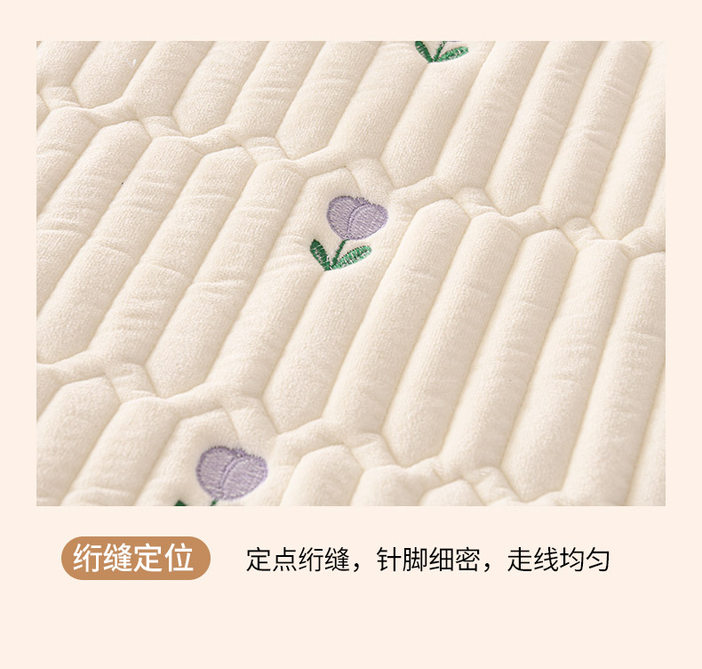 推推家纺 2025新款刺绣夹棉宝宝绒床笠牛奶绒床垫保护套 郁金香-酒红