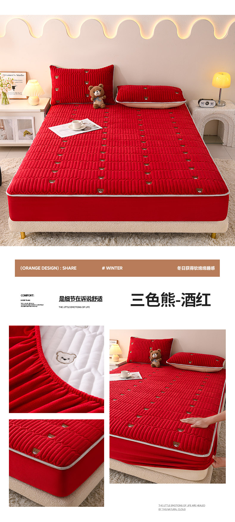 (总)推推家纺 2025新款刺绣夹棉宝宝绒床笠牛奶绒床垫保护套,三色熊-蓝色,郁金香-米白,郁金香-酒红,郁金香-蓝色,郁金香-深灰,三色熊-酒红,三色熊-米白,三色熊-深灰