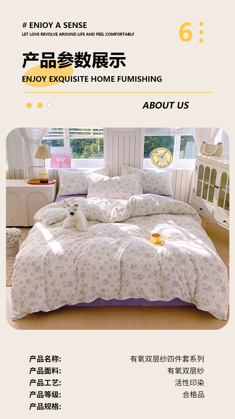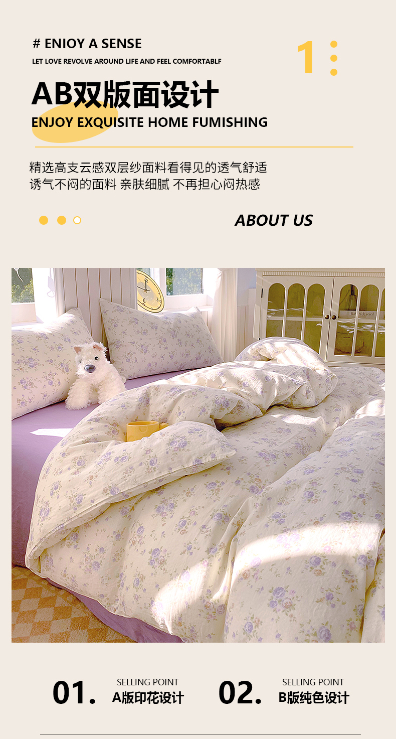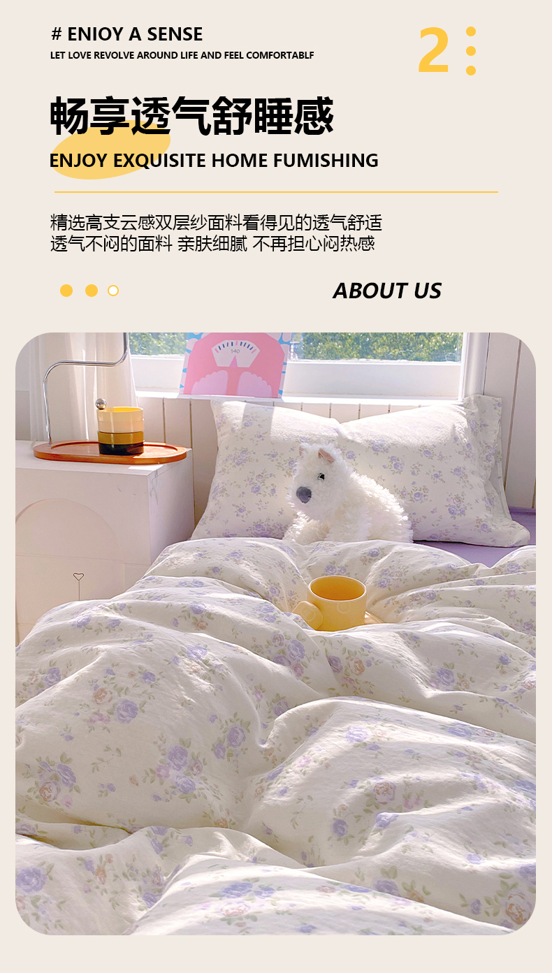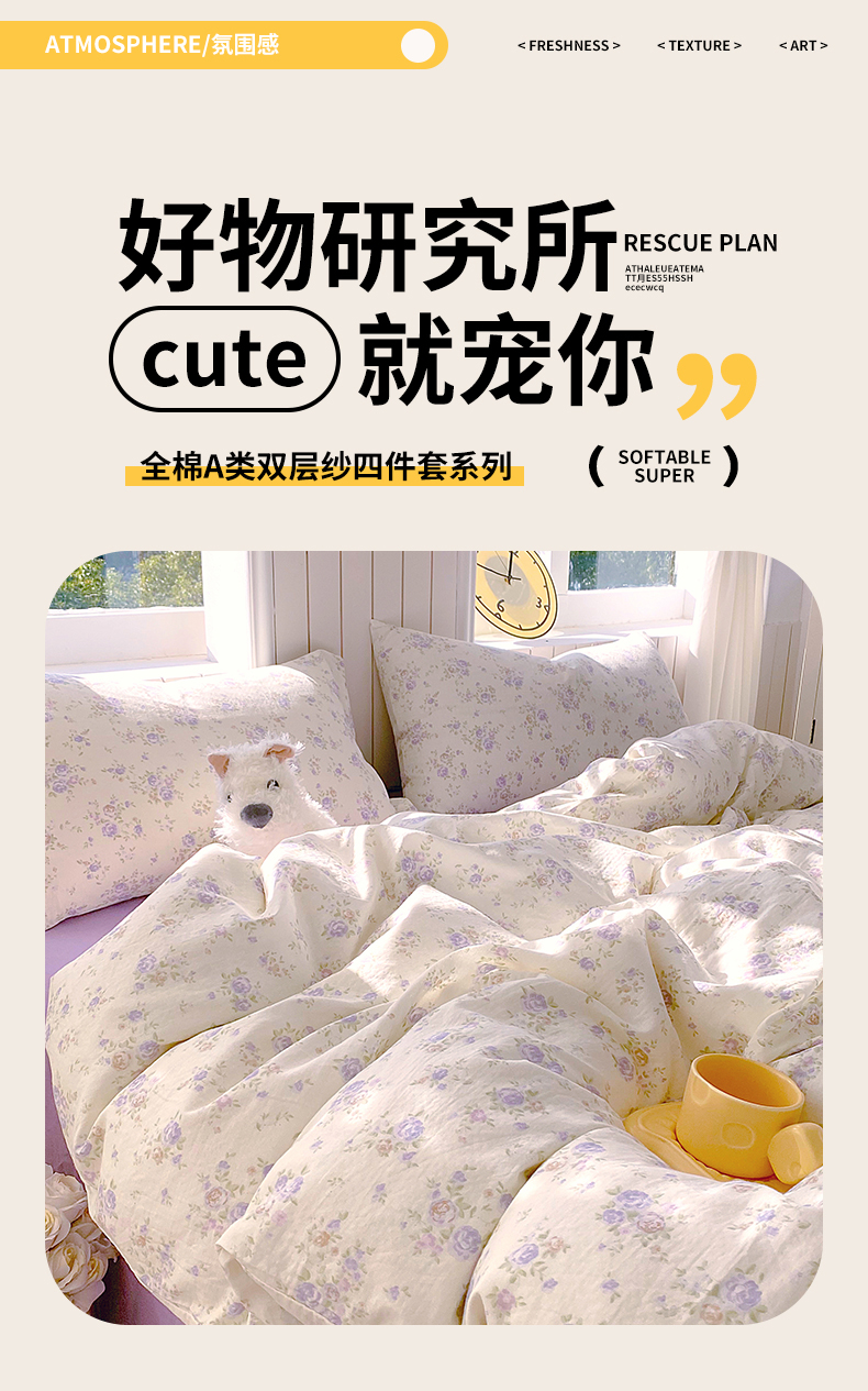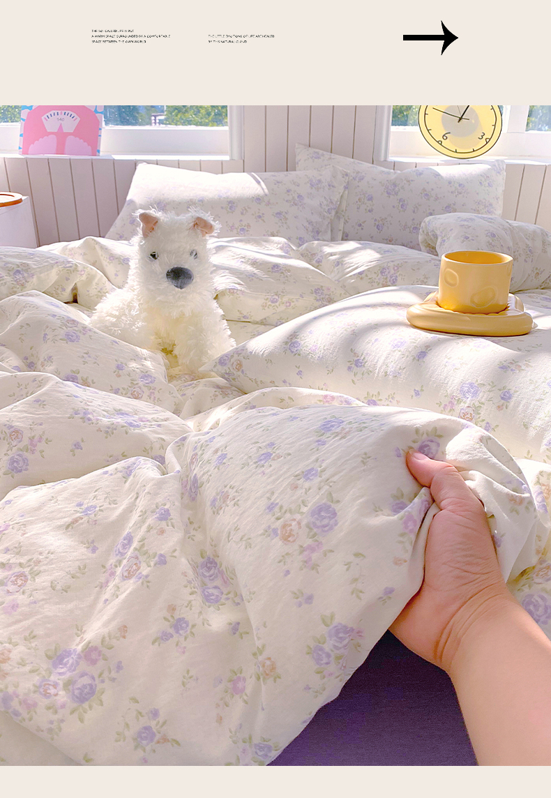当前位置: 91家纺网 > 商品网购 > 床品套件 > 四件套 > 全棉普通四件套 > 春皖家纺 2026新款A类全棉有氧双层纱印花四件套单品系列-四件套 雾色里德