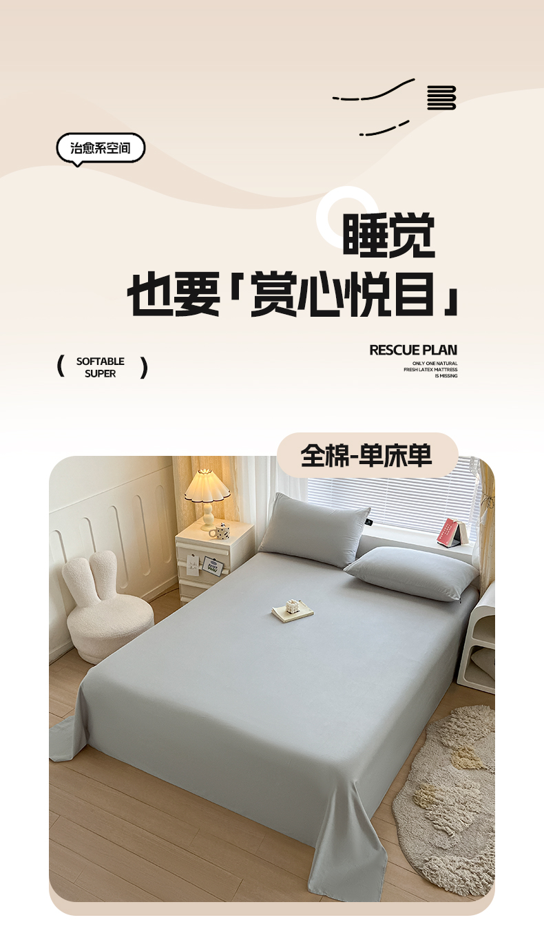 涵宸家纺 2026新款全棉纯色单床单-米兰 床单-梧桐灰