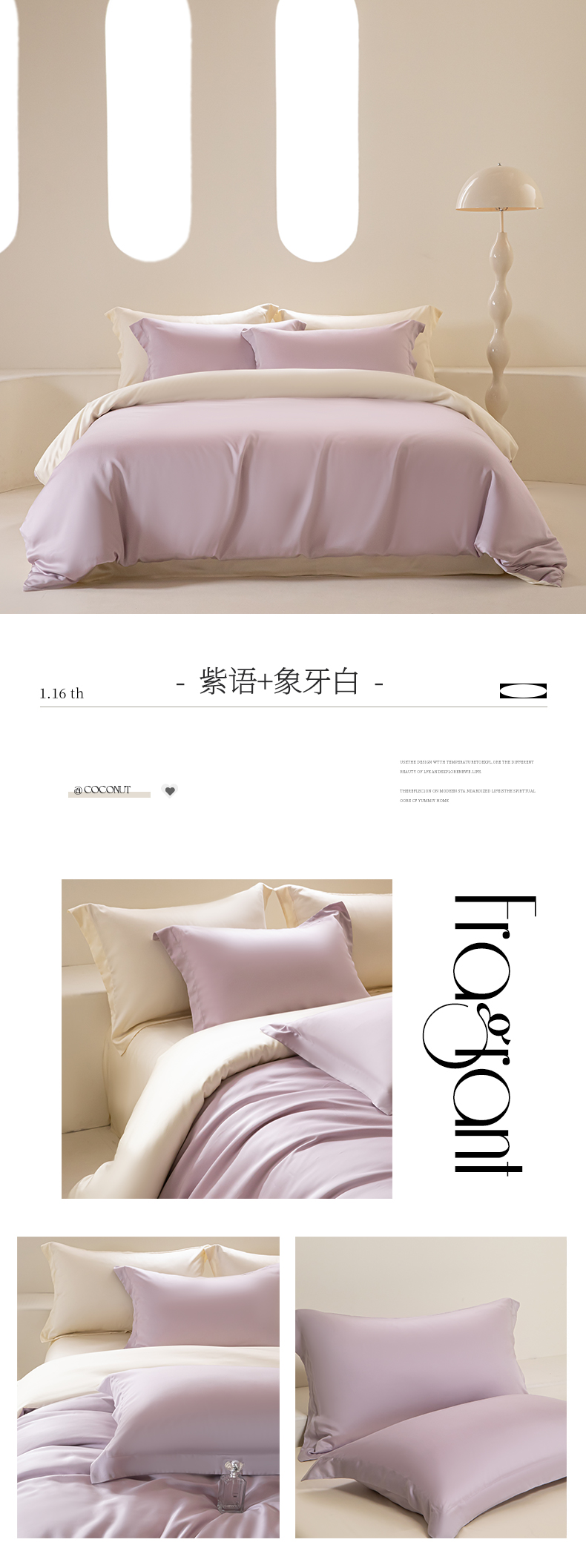 涵宸家纺 2026新款纯色天丝棉单被套-场景二 时尚灰+玫瑰粉