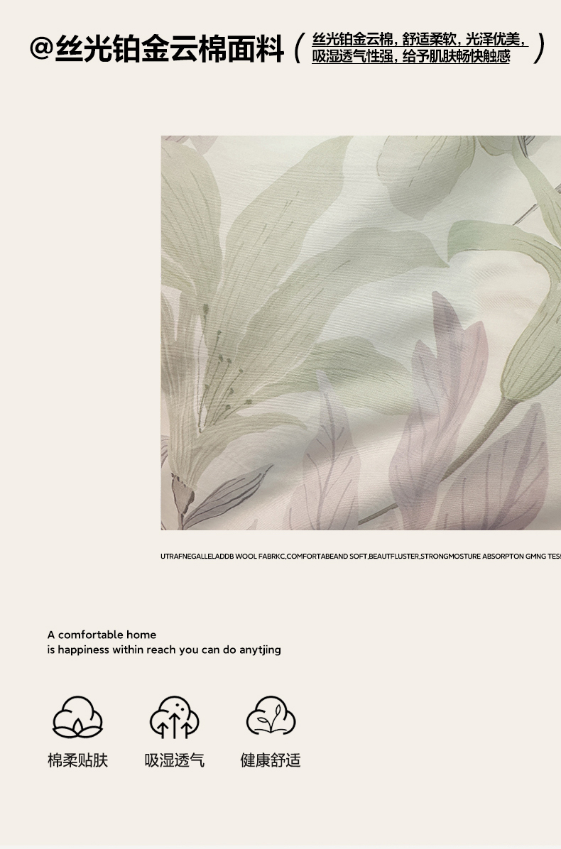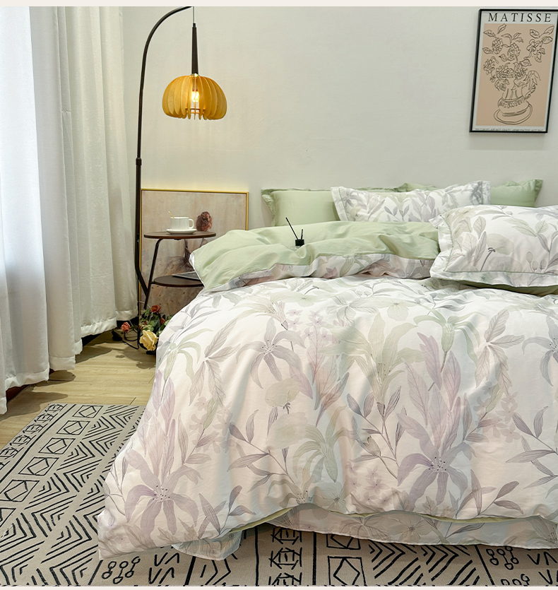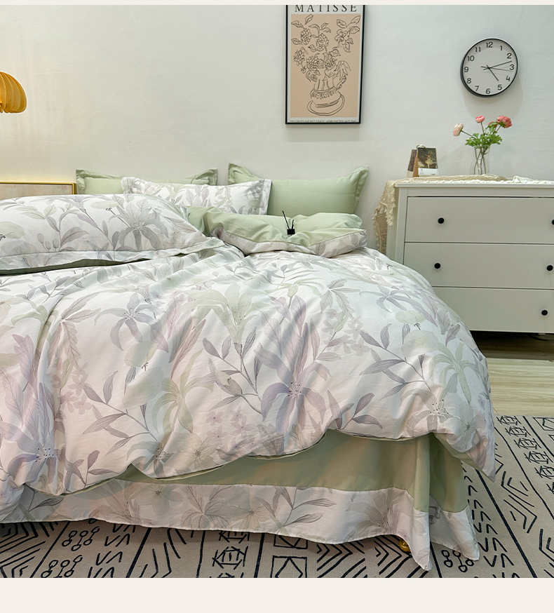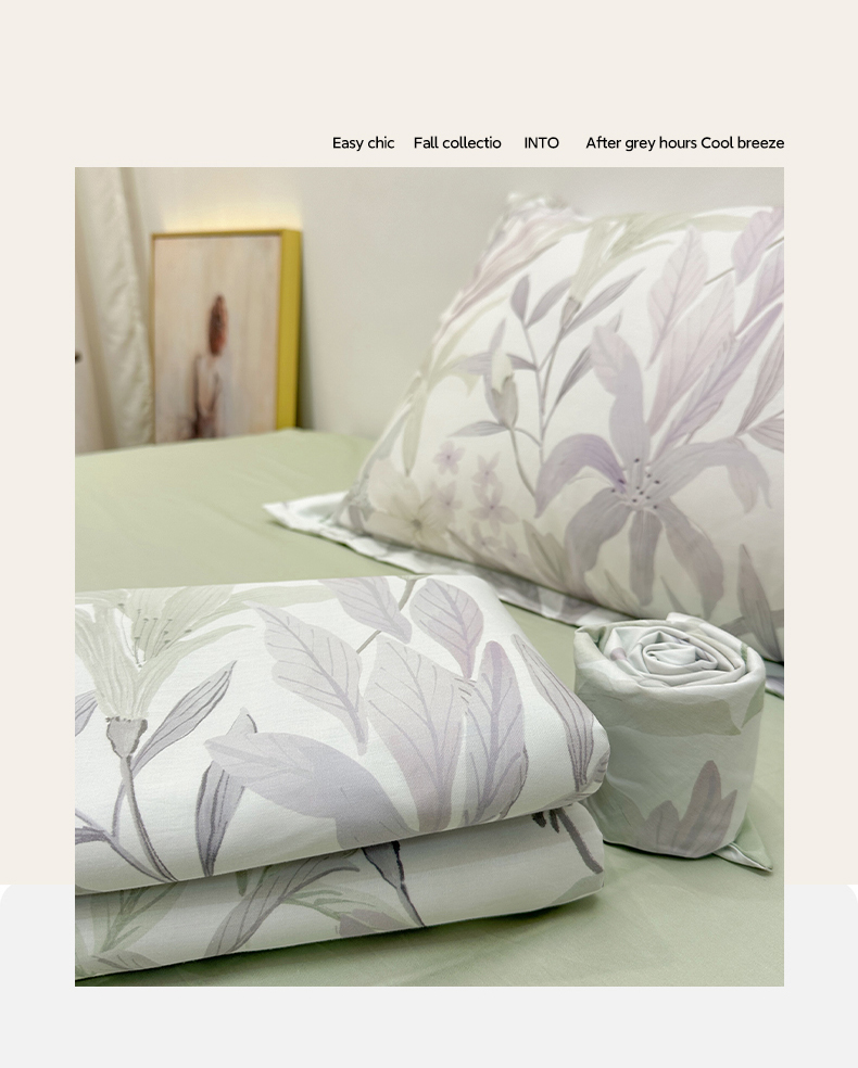 (总)橙艺家居 2026新款丝光铂金云棉印花四件套 本店线上严格控价,券后、活动后标准不得低于218元,以此类推。请各位老爷严格遵守,以免低价后再调整价格,影响链接权重,花朝拾露-紫,花田诗梦-粉,花颜外-粉,蔓月-紫,梦叶集-粉,慕枝下-绿,千叶密语-粉,闻栖-绿,雅莹-绿,叶间绒雪-兰,叶木槿-米,予她-粉,自然低语-绿,芙晚,奈亚,婉情-灰