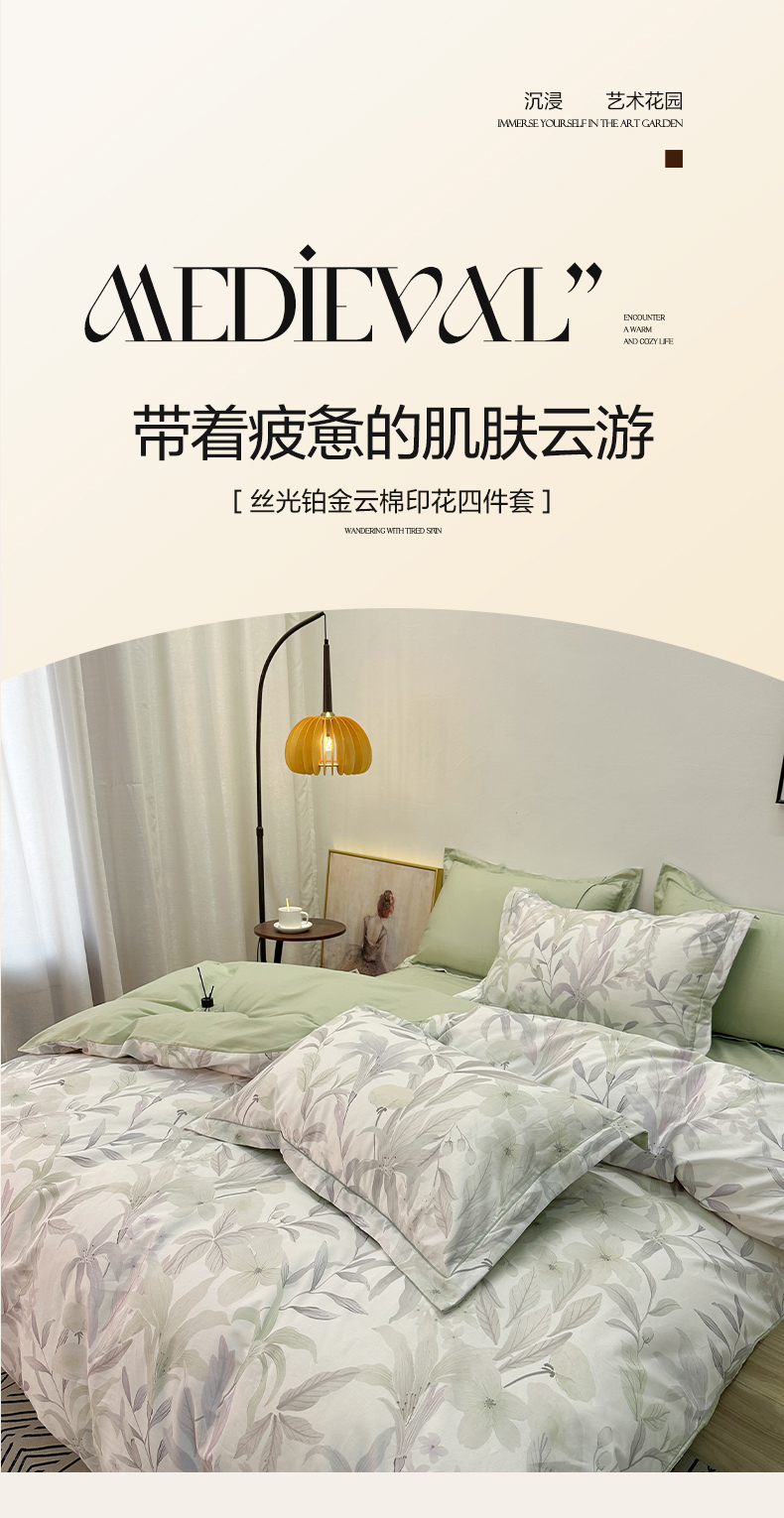 橙艺家居 2026新款丝光铂金云棉印花四件套 本店线上严格控价,券后、活动后标准不得低于218元,以此类推。请各位老爷严格遵守,以免低价后再调整价格,影响链接权重 自然低语-绿