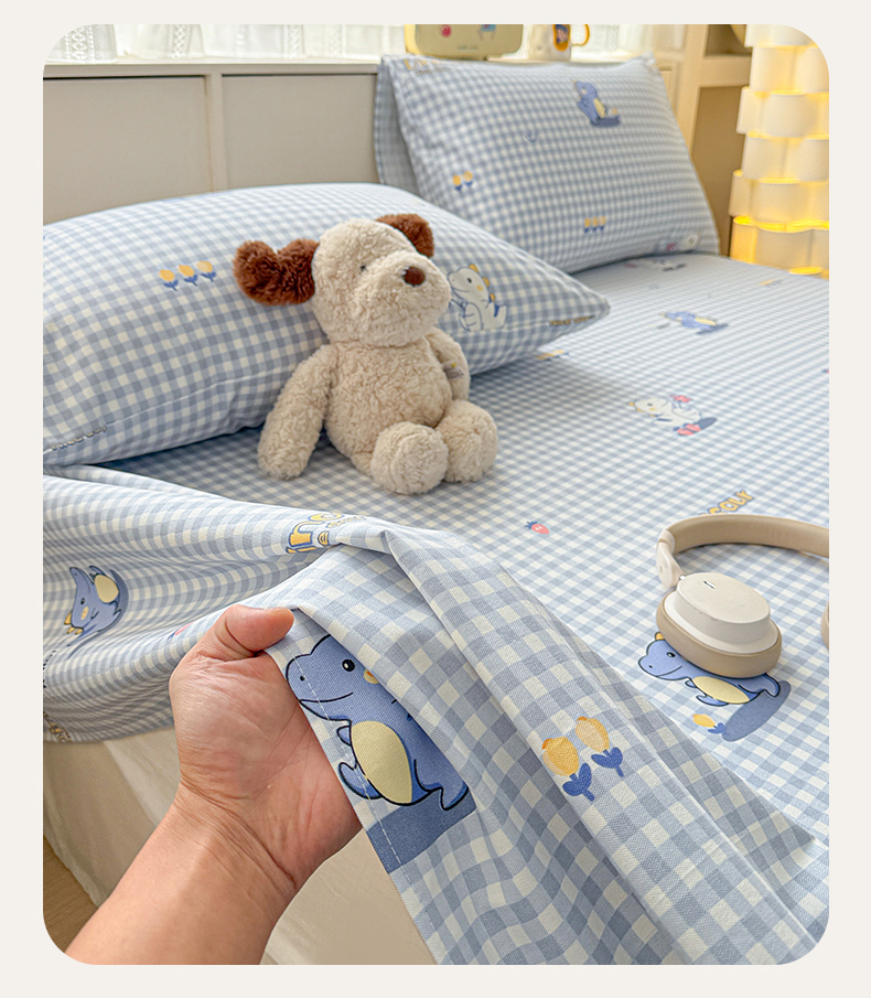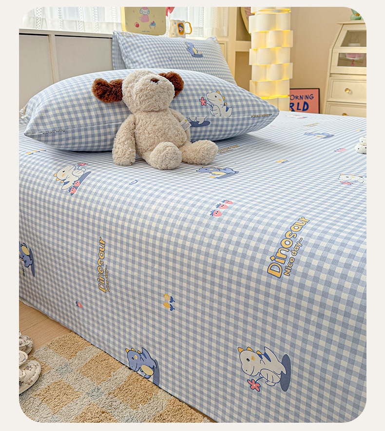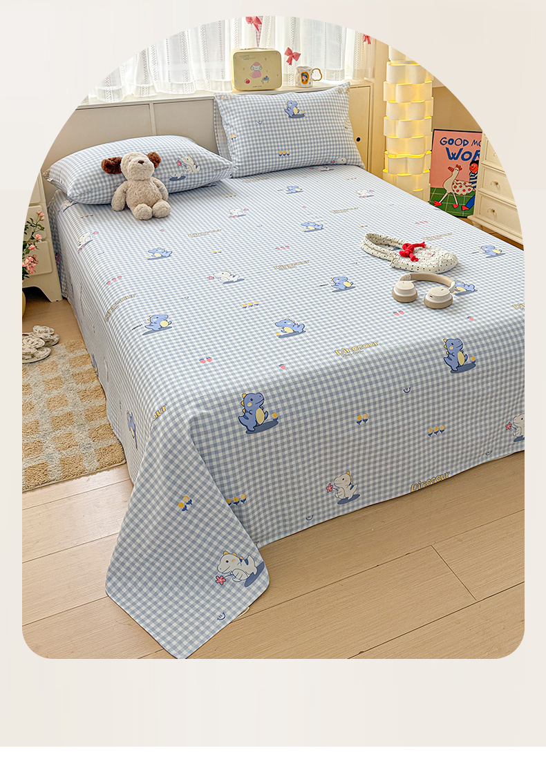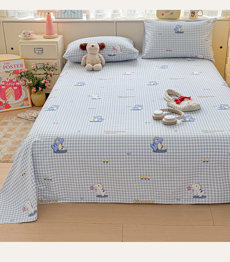 • 91家纺网 家纺一手货源 找家纺 名兮家居 2026新款全棉A类卡通简约时尚老粗布床单 蓝格龙宝
