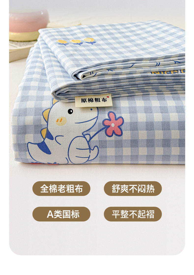 名兮家居 2026新款全棉A类卡通简约时尚老粗布床单 蓝格龙宝