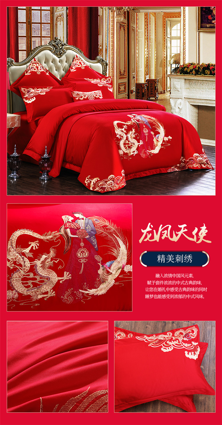 商品名称:千禧婚庆专供 2019新款喷气全棉婚庆四件套多件套 龙凤天使