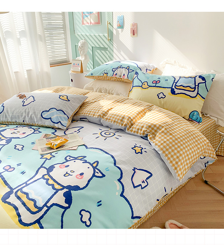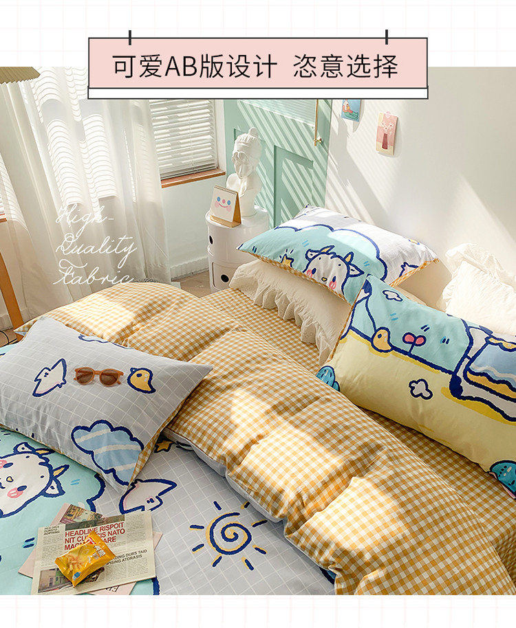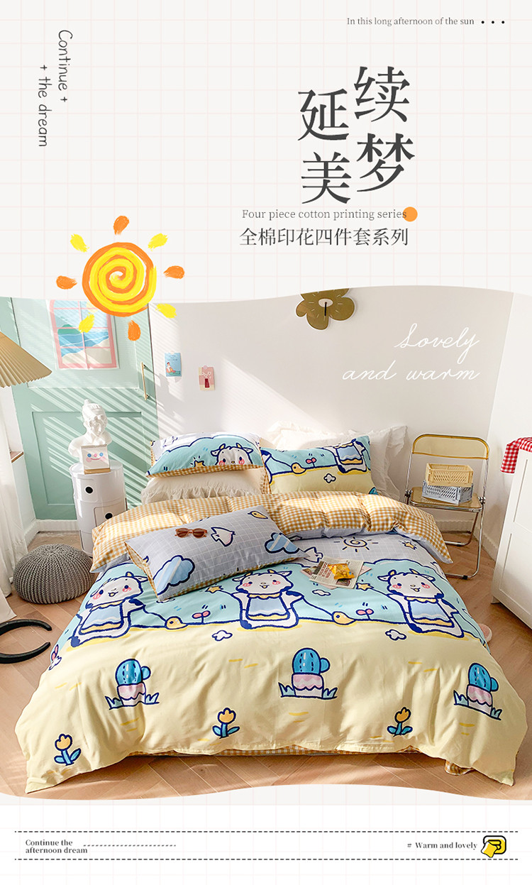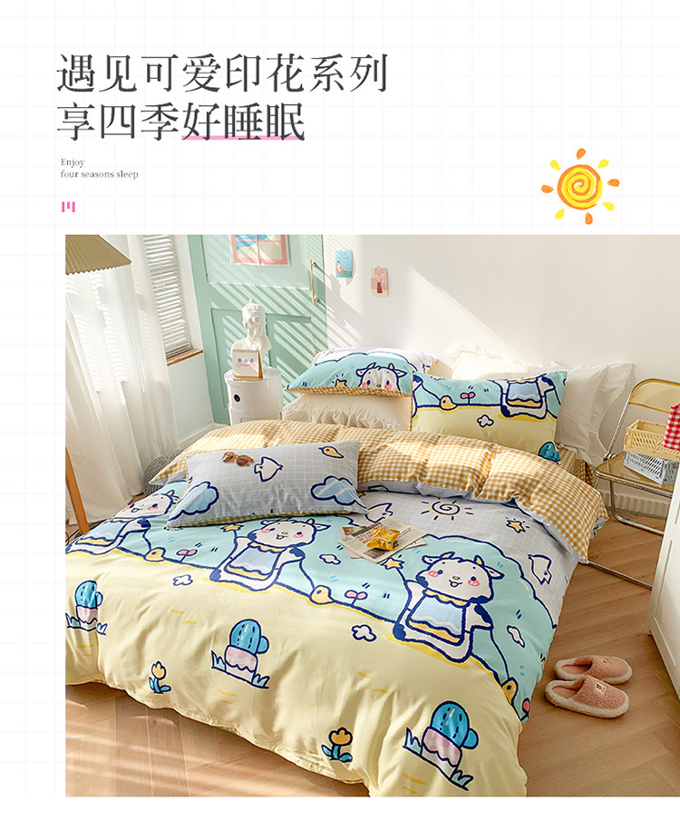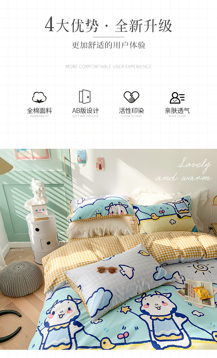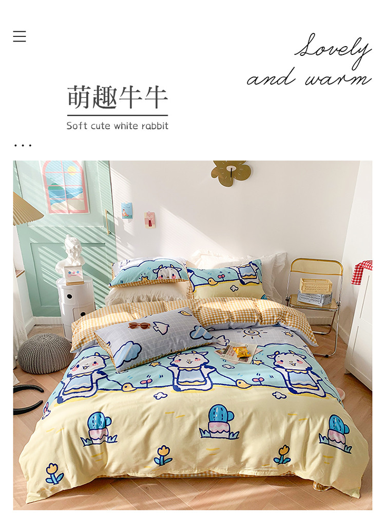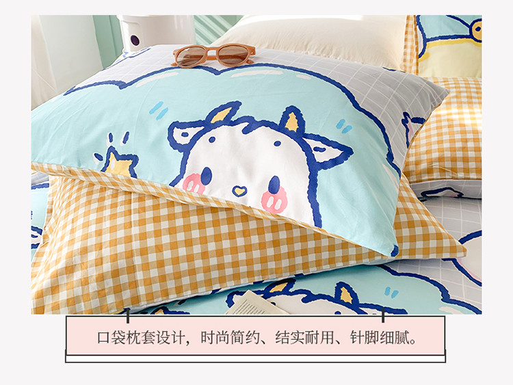 商品名称:澳萝拉 2021新款印花全棉四件套 萌趣牛牛