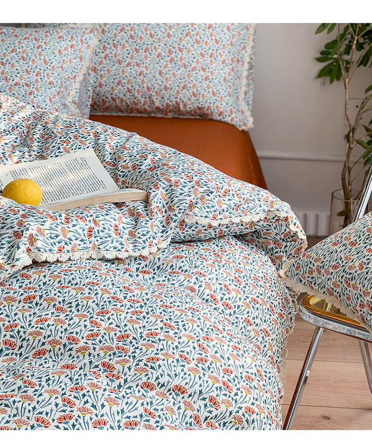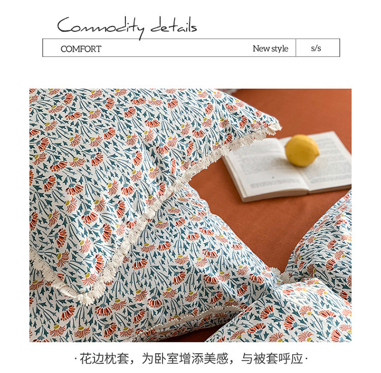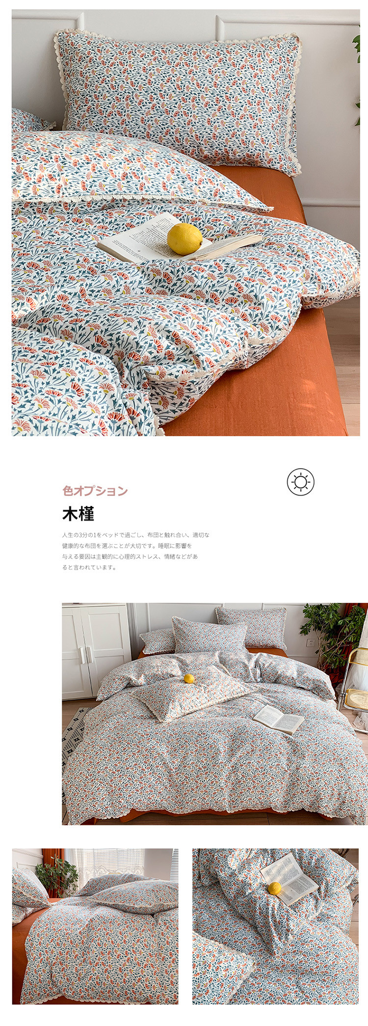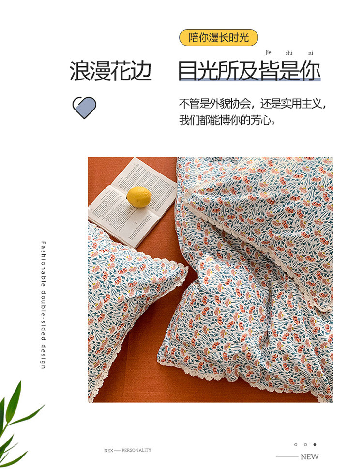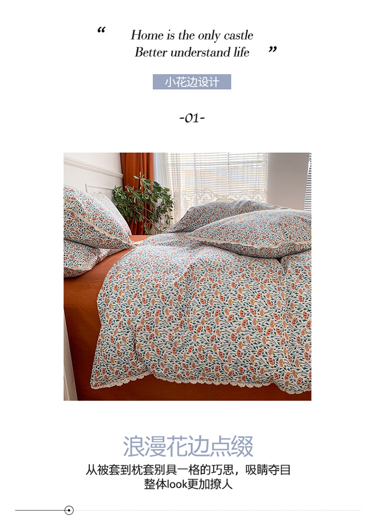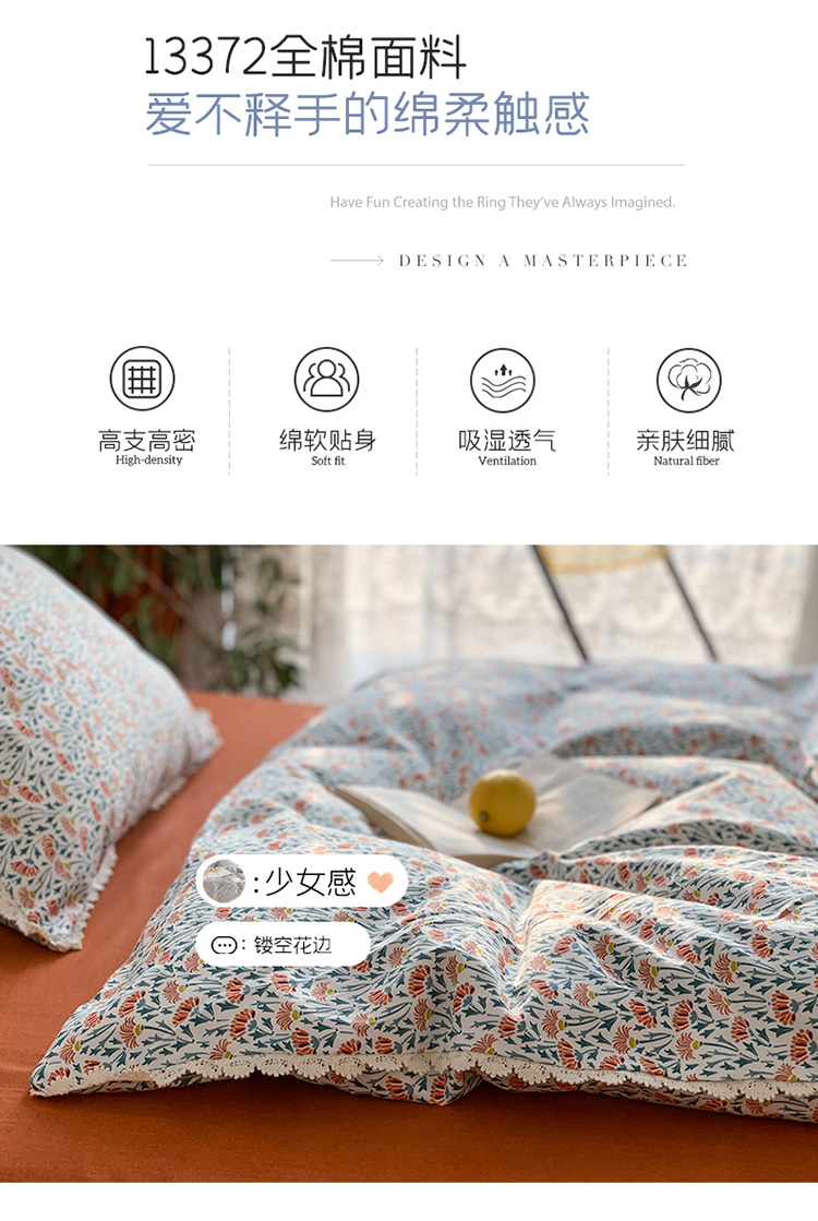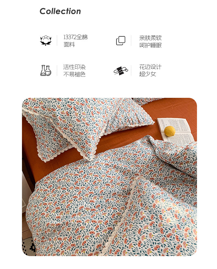 商品名称:澳萝拉 新款13372春夏全棉法式蕾丝花边碎花四件套 木槿
