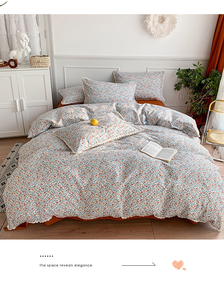 澳萝拉 新款13372春夏全棉法式蕾丝花边碎花四件套 木槿