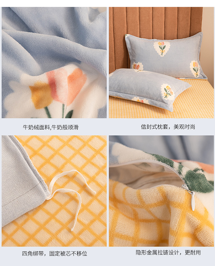 (总)佳梦家纺 2021新款牛奶绒刺绣四件套,湖蓝,浅绿,天蓝