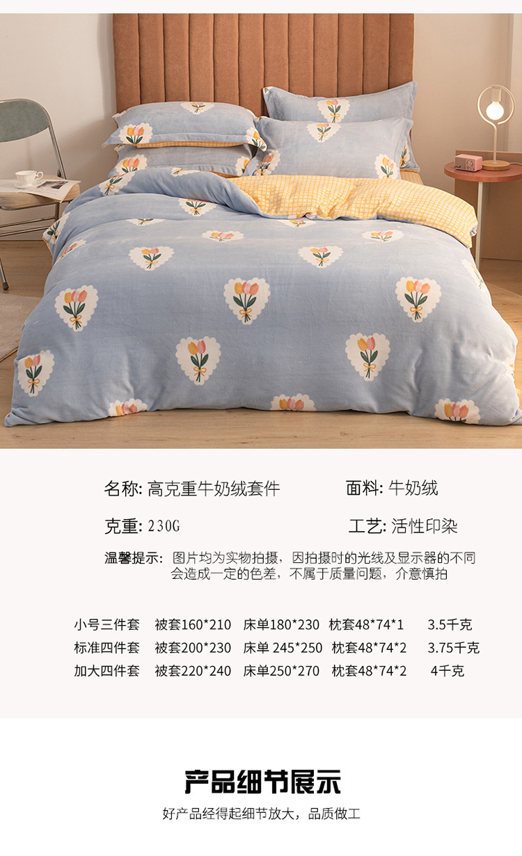 商品名称:佳梦家纺 2021新款牛奶绒印花四件套 心朵