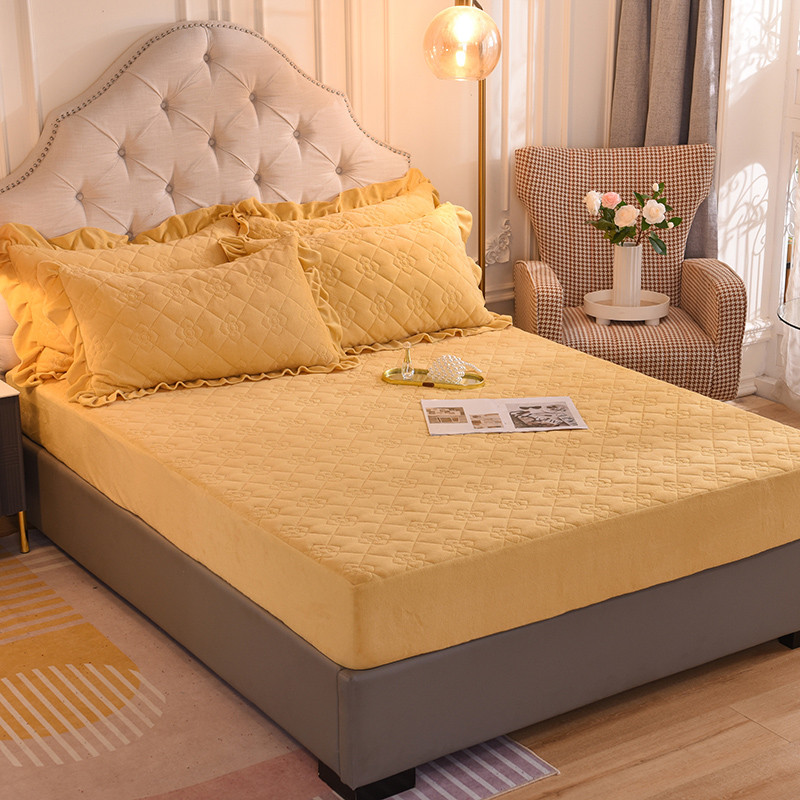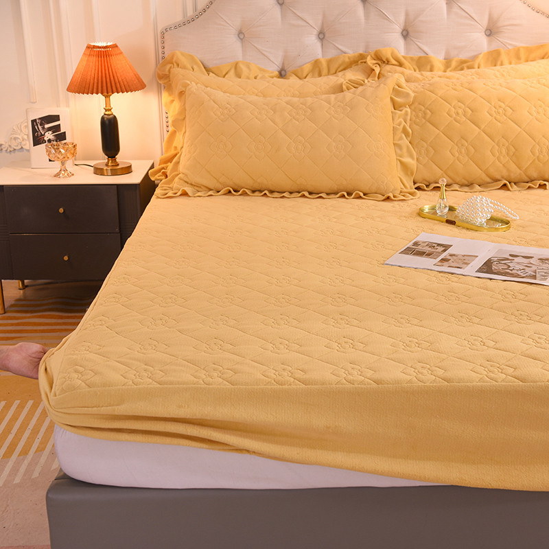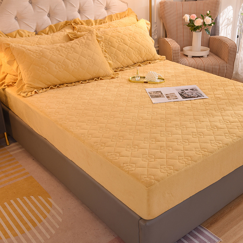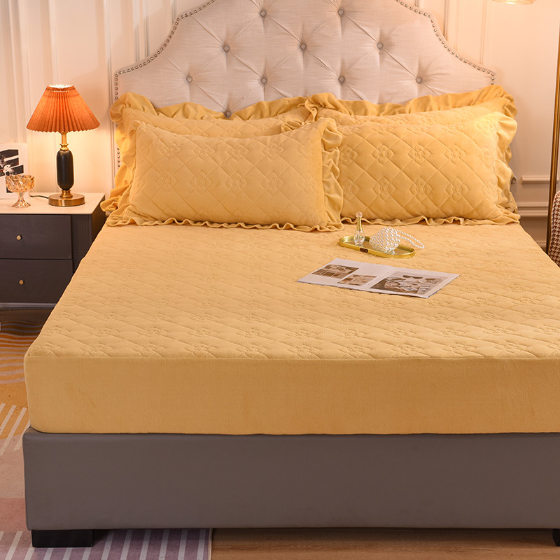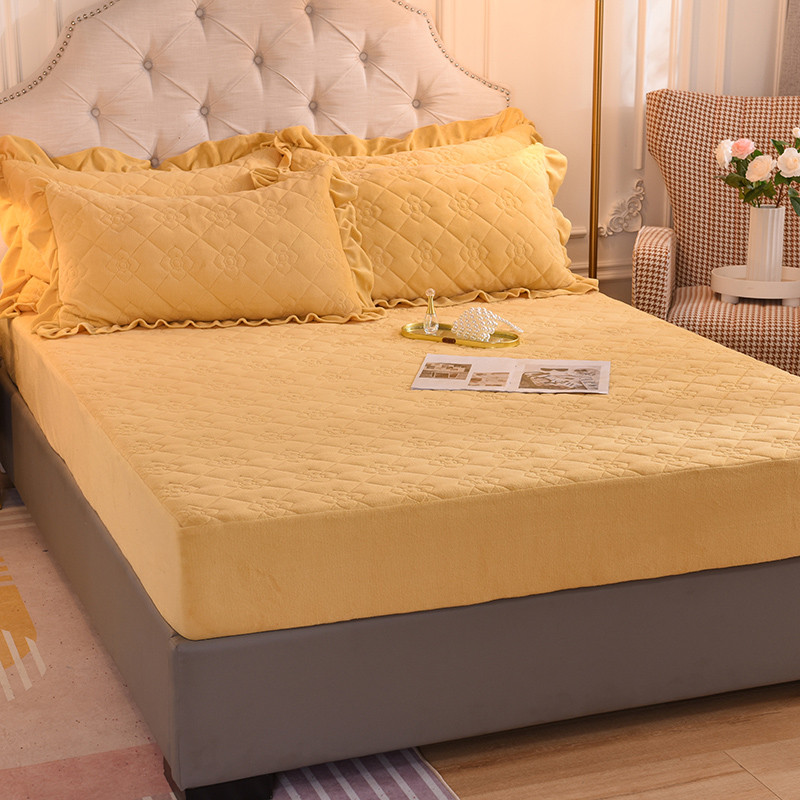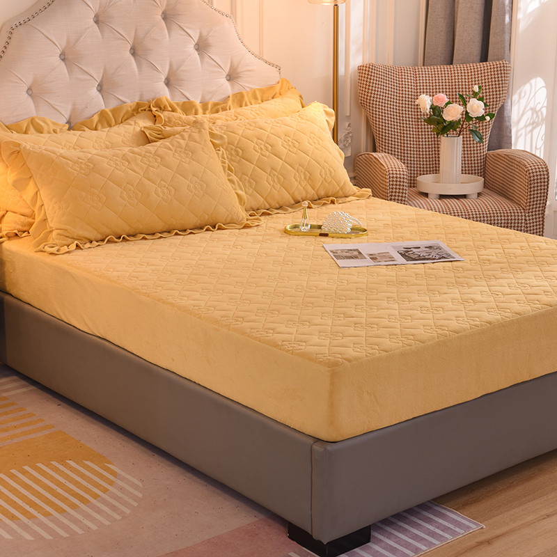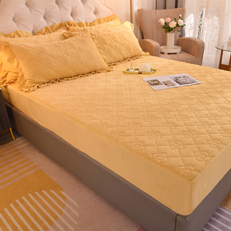 商品名称:甜之梦 2025新款牛奶绒夹棉防滑纯色床笠 嫩黄