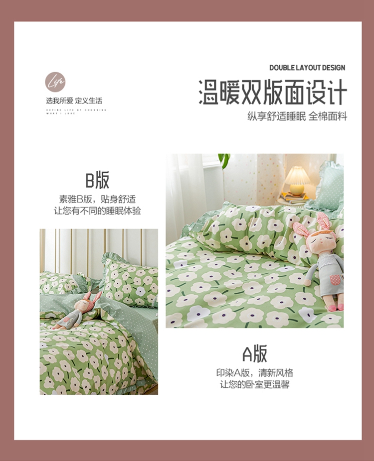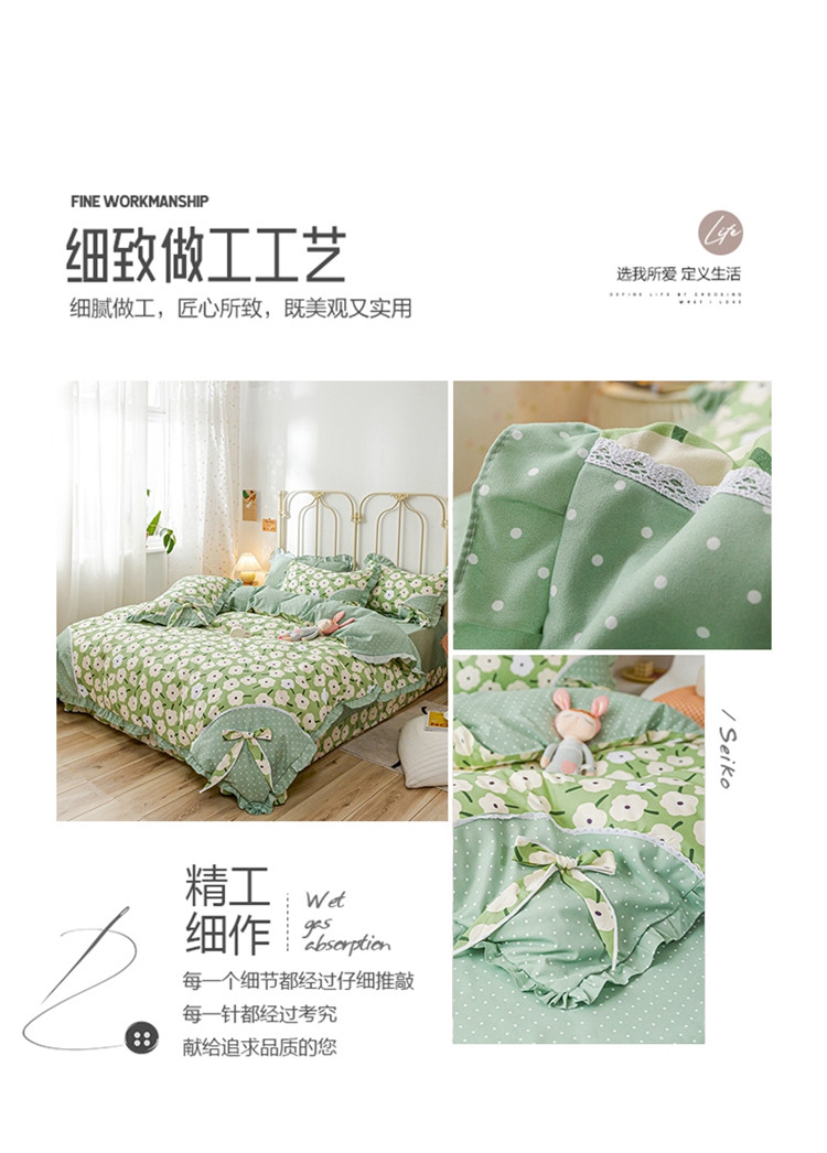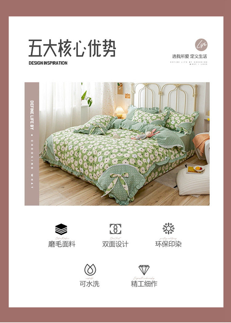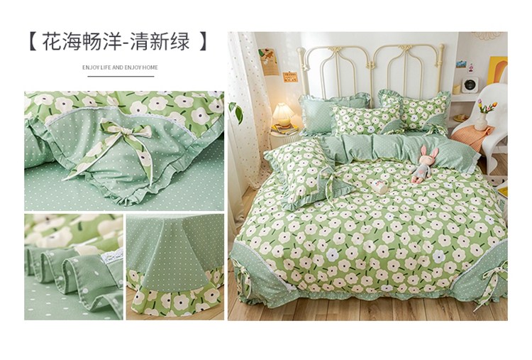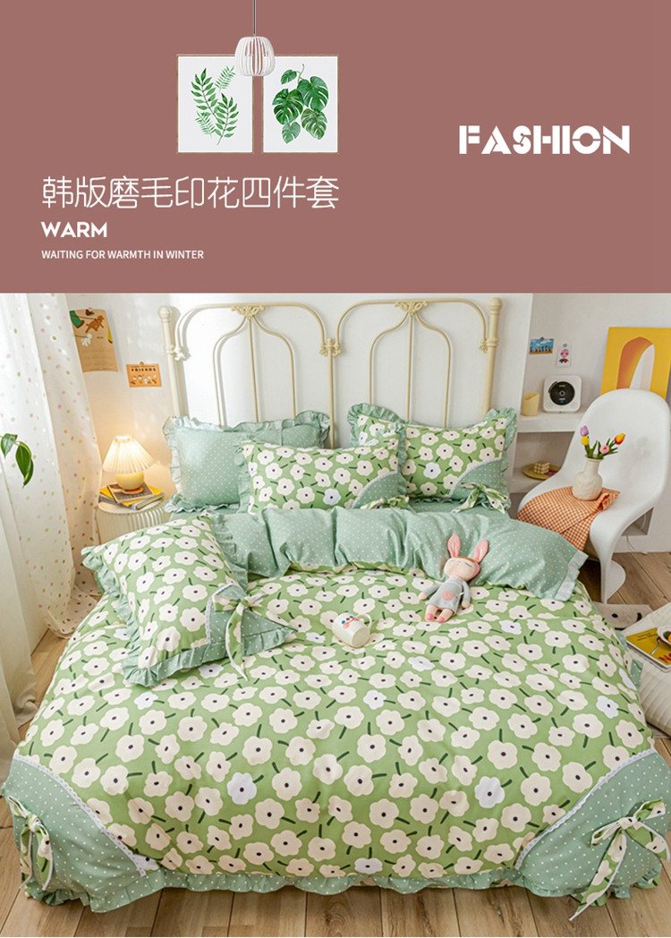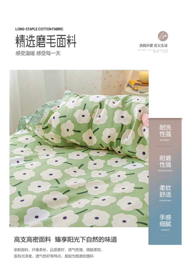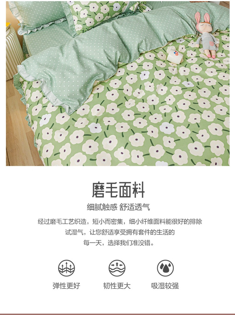 商品名称:靓生活 2021新款韩版磨毛四件套 花海畅洋-清新绿