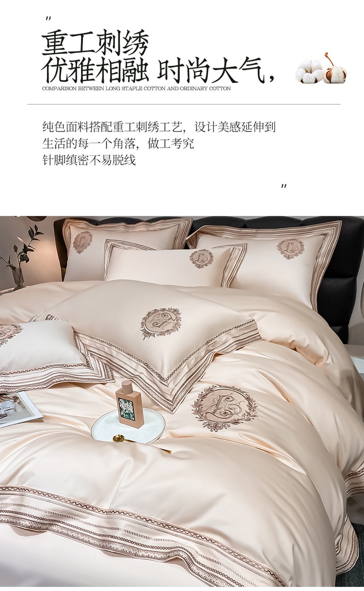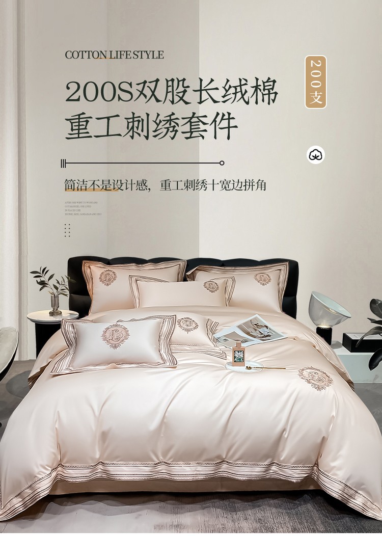 200支新款长绒棉宽边刺绣四件套