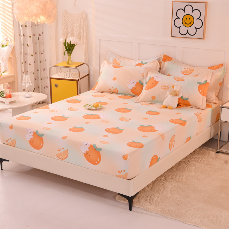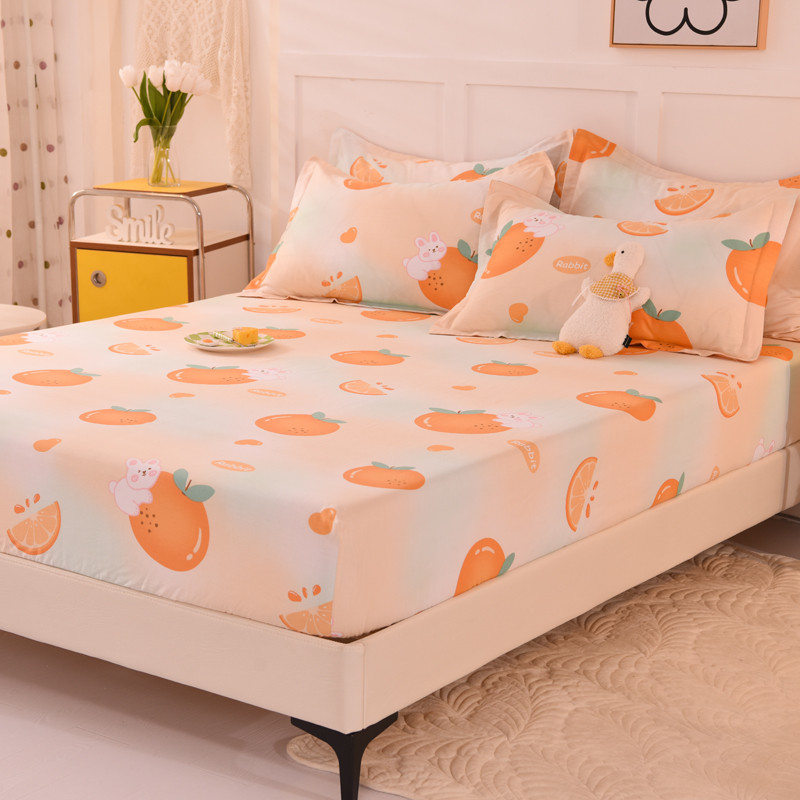 甜之梦 新款12868全棉印花系列单床笠(可接缺角异型) 甜橙小兔