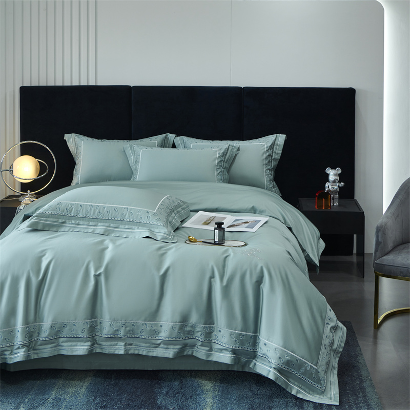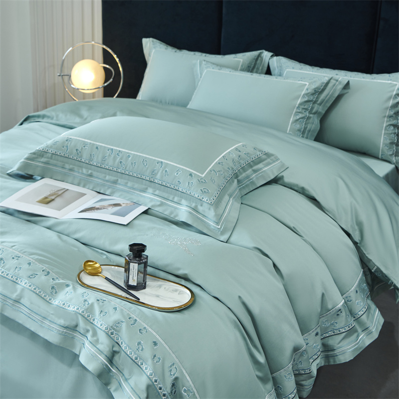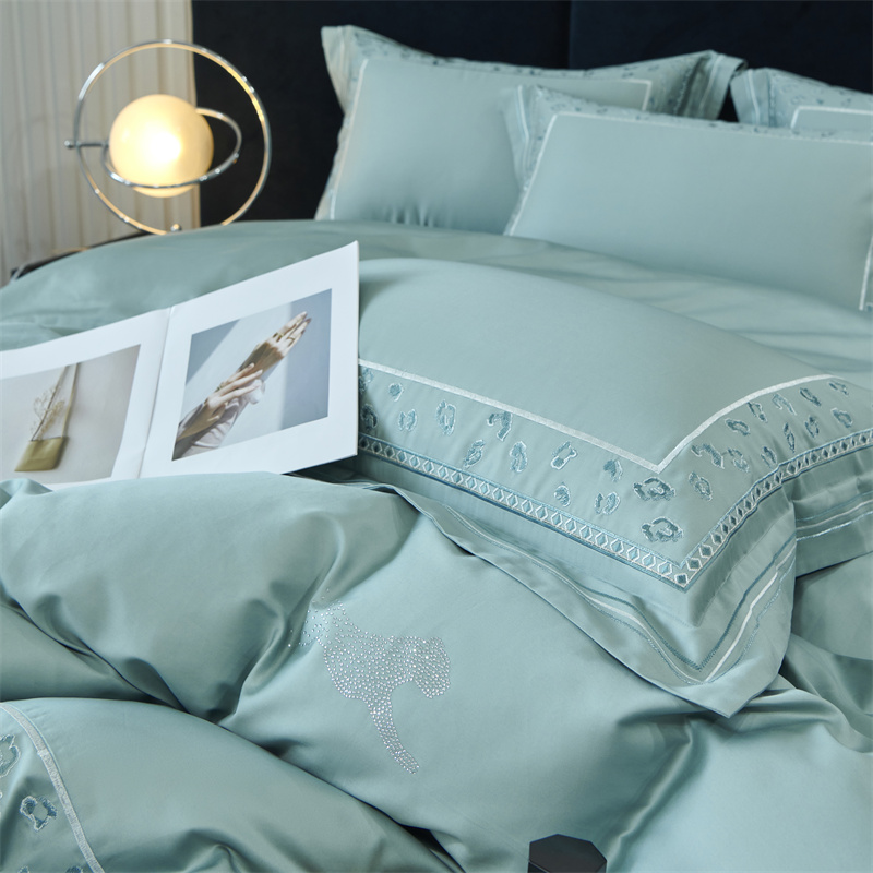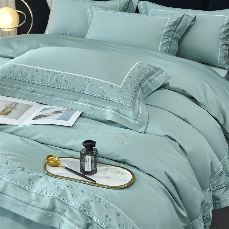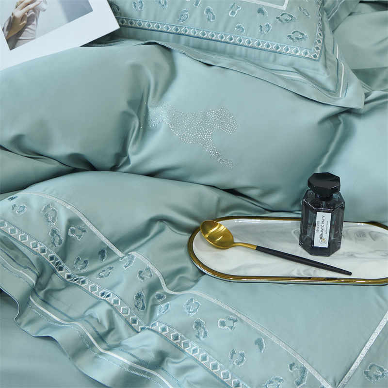 榻尚 2023豹纹刺绣工艺超柔长绒棉四件套赫拉-湖绿