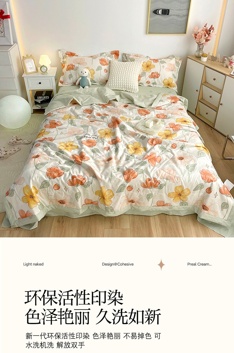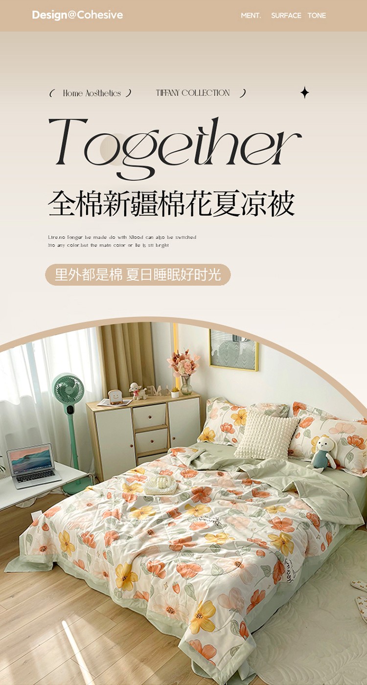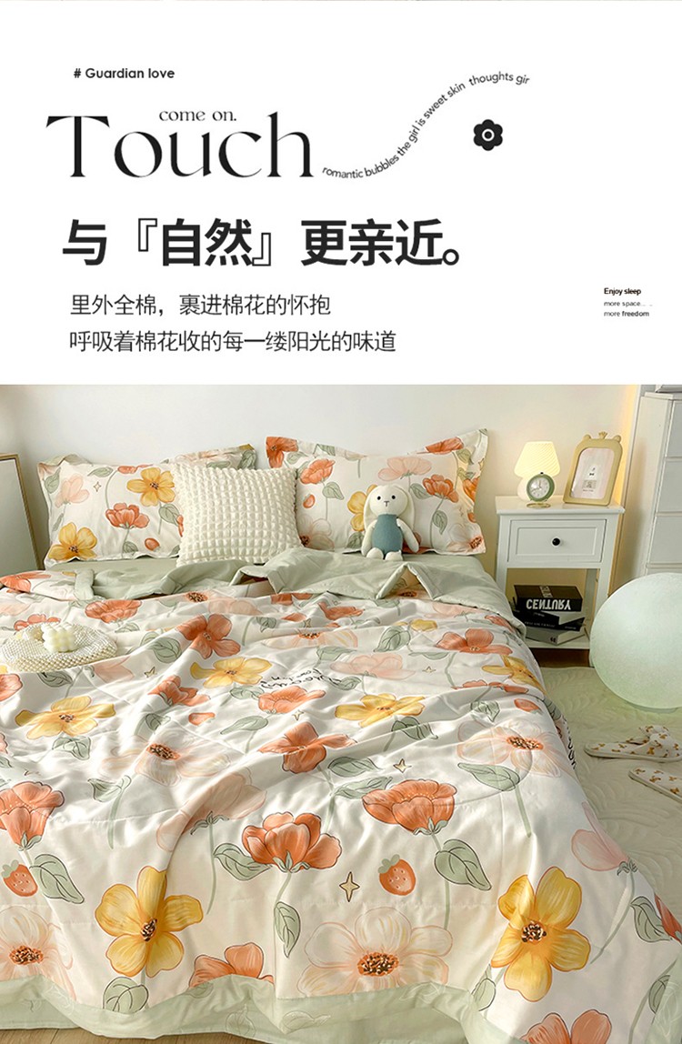 • 91家纺网 家纺一手货源 找家纺 仟网汇  2023新款全棉新疆棉花夏凉被 暖阳情调-桔