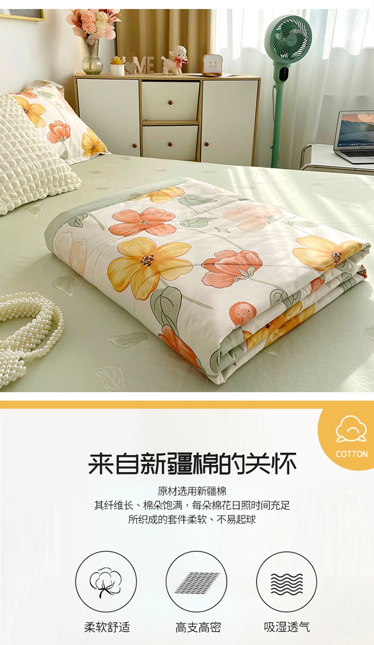 仟网汇 2023新款全棉新疆棉花夏凉被 暖阳情调-桔