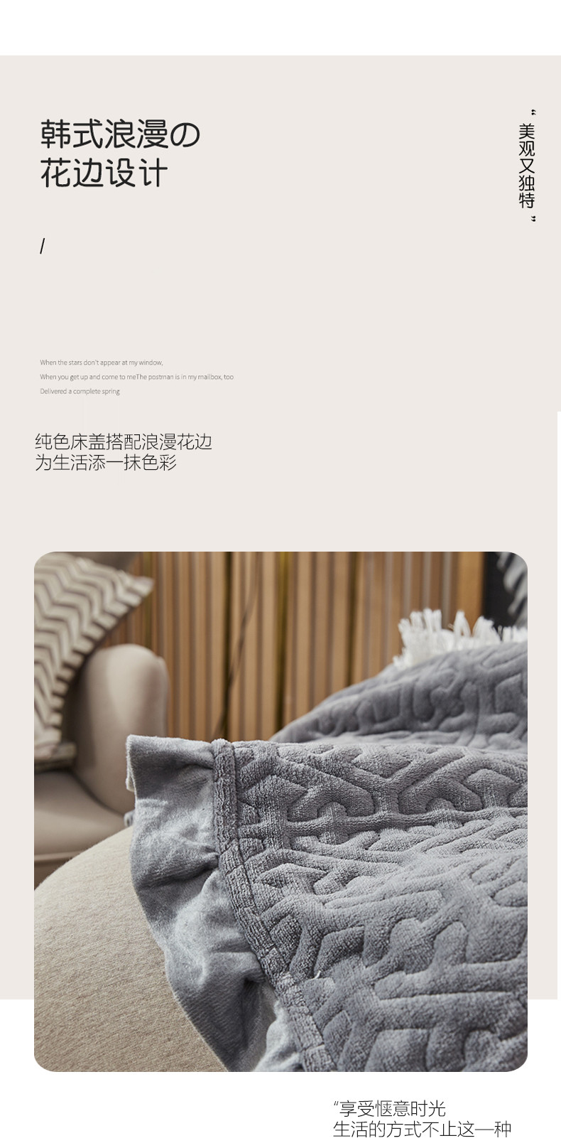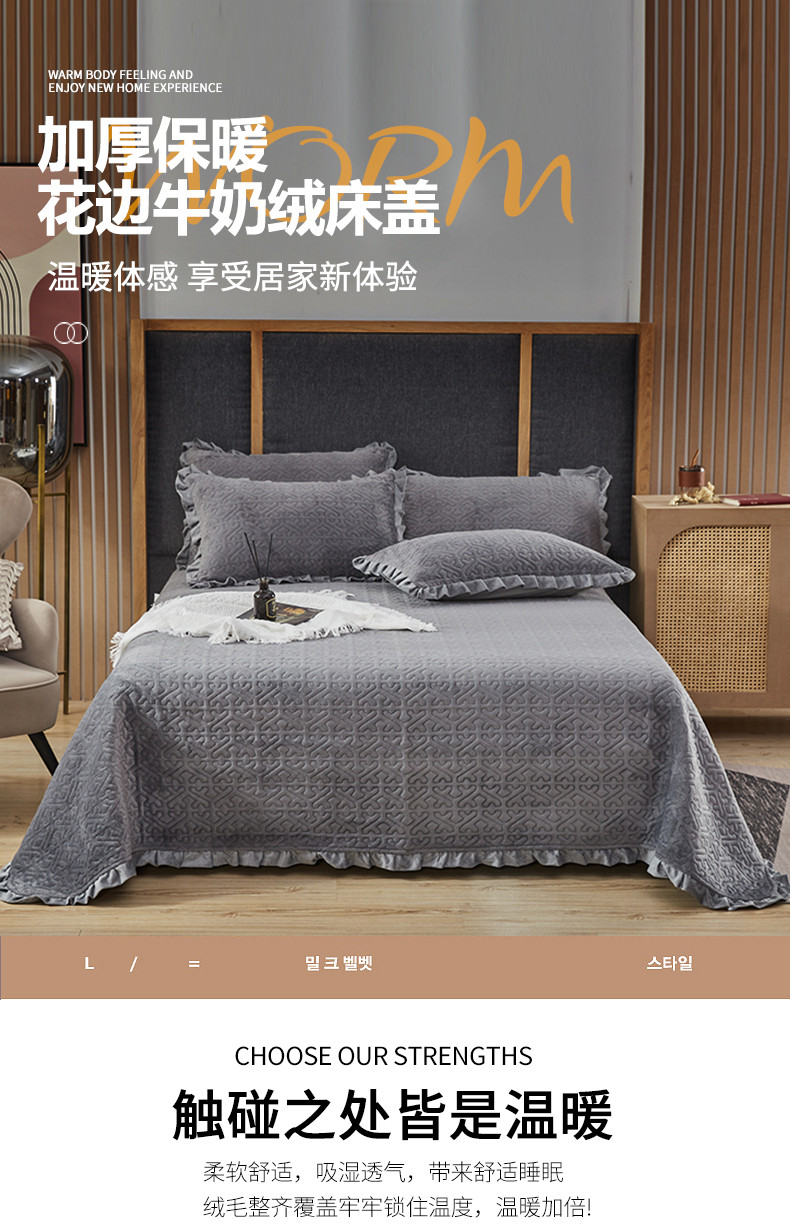 • 91家纺网 家纺一手货源 找家纺 佳梦家纺 牛奶绒纯色花边床盖绗缝夹棉绒毯三件套榻榻米席梦思床垫子 深灰