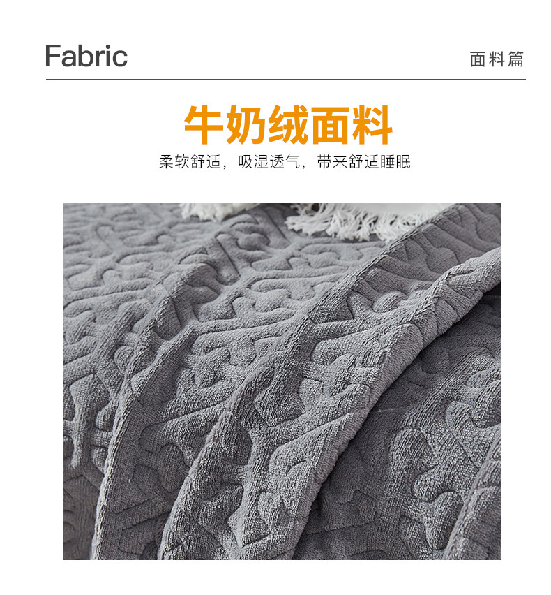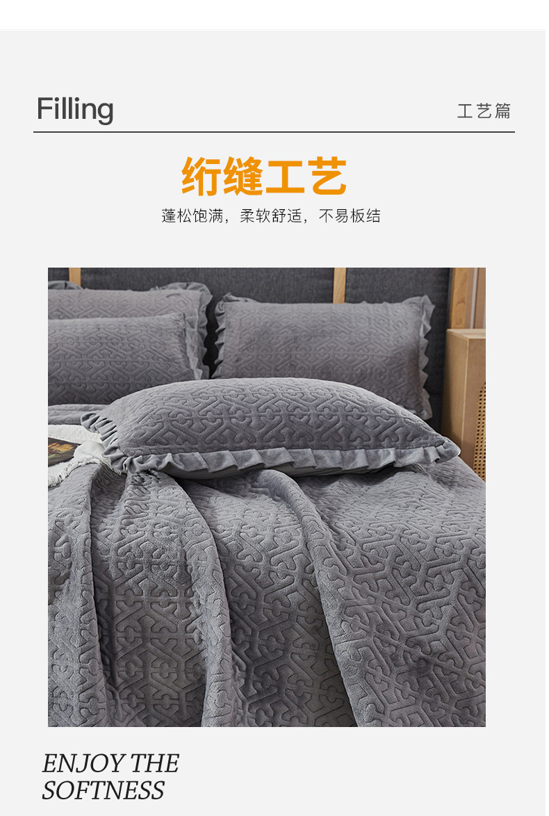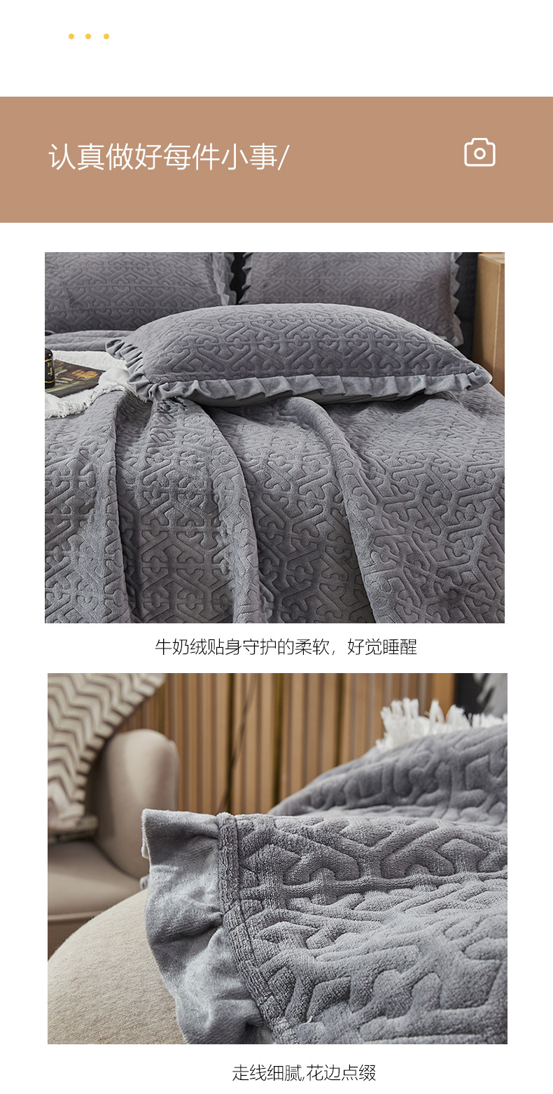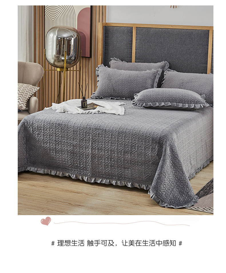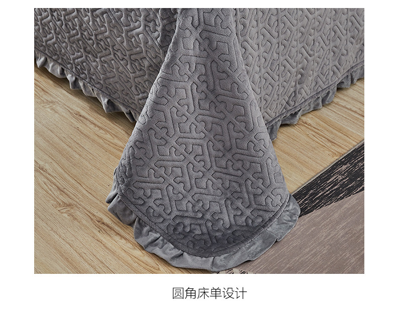佳梦家纺 牛奶绒纯色花边床盖绗缝夹棉绒毯三件套榻榻米席梦思床垫子 深灰