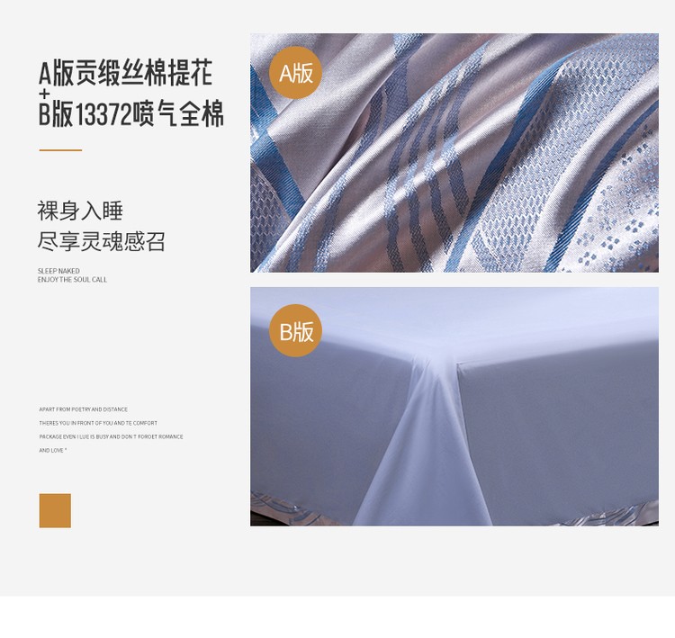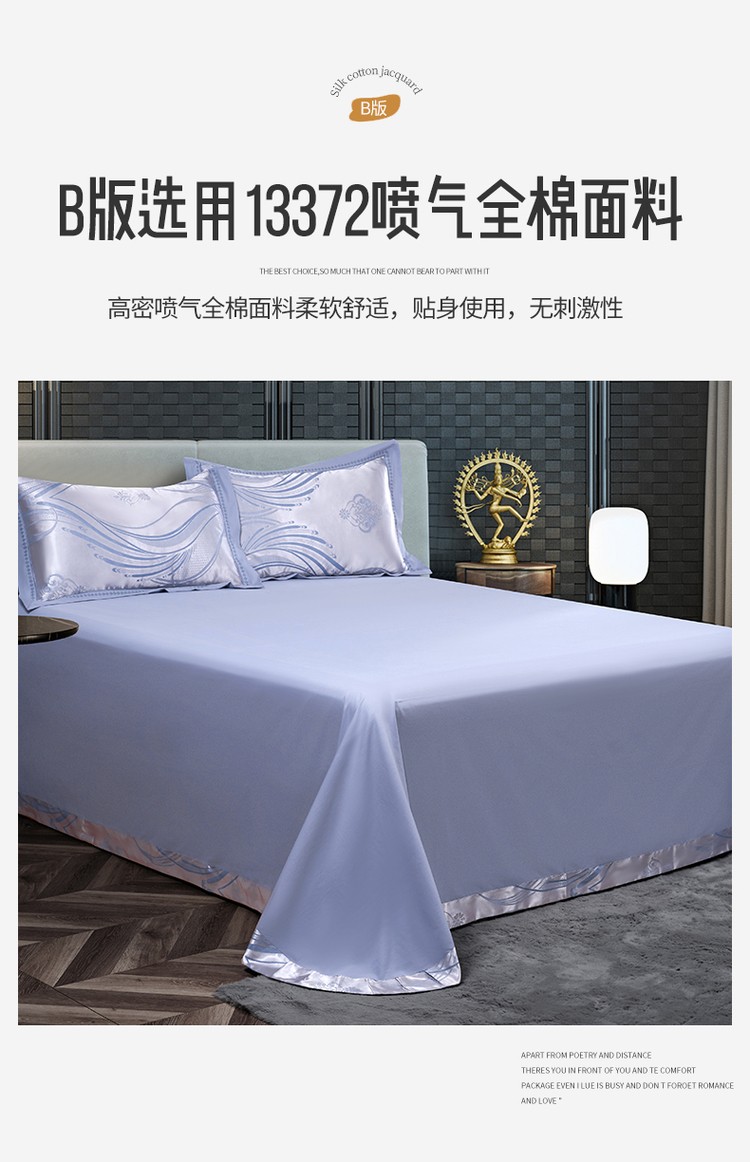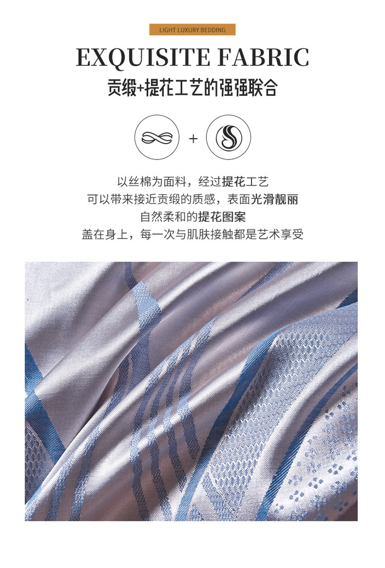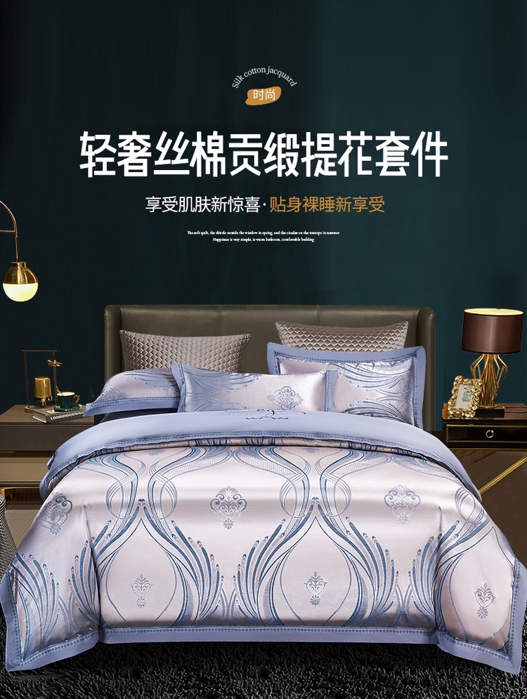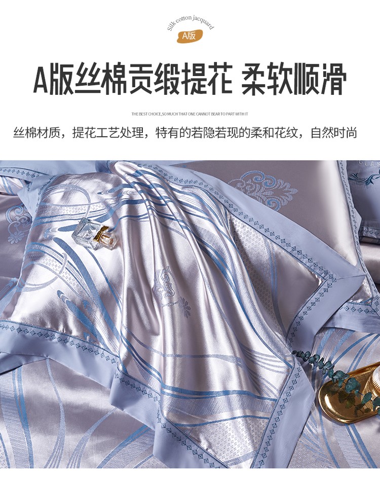 柔觉家纺 天丝刺绣贡缎提花全棉四件套,水汐-绸缎兰