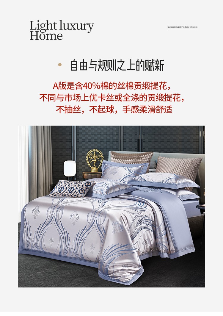 (总)柔觉家纺 天丝刺绣贡缎提花全棉四件套,艾利斯-兰金,宝琪-藕荷玉,罗娜恋歌-粉,奥威丽雅-蓝,奥薇丽雅(豆沙),龙凤交鸣(大红),罗娜恋歌-红玉,情恋花语(大红),罗兰庄园-靛蓝,莫奈情怀-蓝金,叶语浪漫-浅紫,约瑟情调-灰金,约瑟情调-魅紫,雅普诺-卡兰,小憩-雪青,科西利亚-金色,雅普诺-红灰,水汐-绸缎兰